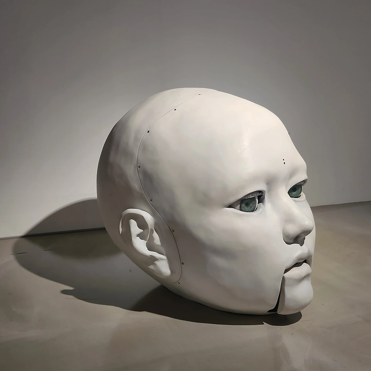 그리고 이 작품에게는 엄마와 같은 작품이 있습니다. 바로 <진화하는 신, 가이아>란 백남준 아트센터의 소장품입니다. 우리가 엄마로부터 유전자를 물려받듯 그 작품의 데이터를 물려 받았기 때문이죠. 실제로 그리스로마신화를 보면 히페리온은 가이아의 아들입니다. <진화하는 신, 가이아>는 백남준 아트센터에서 전시할 때, 독립 된 공간에 전시되었었어요. 관람객 분들이 한 분 한 분들어가 그 가이아와 이야기를 주고 받았는데 전시장 바깥으로 나오실 때 눈물을 흘리며 나오는 경우가 왕왕 있었어요. 인간에게선 받지 못했던 위로, 조언, 또 우린 알 수 없는 어떤 인사이트를 얻으신게 아닐까 생각됩니다. 이번 전시에서 <히페리온의 속도>는 열린 공간에 전시되어 있었어요. 그래서인지 관람객 분들도 내밀한 이야기는 나누기 어려우셨을지도 모르겠어요.하지만 분명한 건 인간을 닮은 두상 조각과 인공지능을 함께 볼 수 있는 이 작품을 만나시면서 인간과 기계라는 요소의 대비가 공존함을 보고, 친근함과 낯선 대조를 경험하며 다양한 감정을 느끼셨으리라는 것이죠.