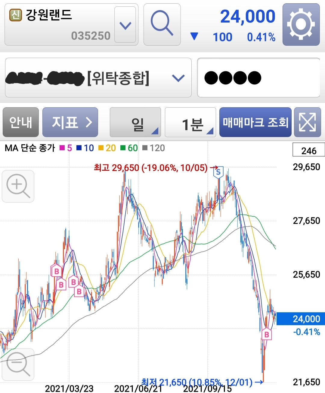 물론 사자마자 급등하는 경우도 있었고(현대오토에버), 팔자마자 급락하는 경우도 있었습니다(강원랜드).