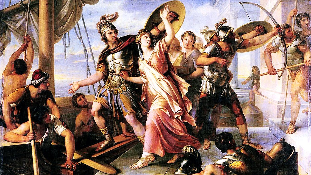 그렇게 파리스와 헬레네가 딱 만났는데, 정말 아프로디테의 약속이 실현되고 말아. 그야말로 둘이 한눈에 서로 반했고, 파리스는 헬레네가 스파르타 왕의 부인이란 사실은 전혀 개의치 않고 납치하듯 트로이로 데려왔지.