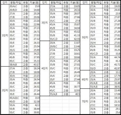 <목동 신시가지 아파트 1-7단지 대지지분 예시>