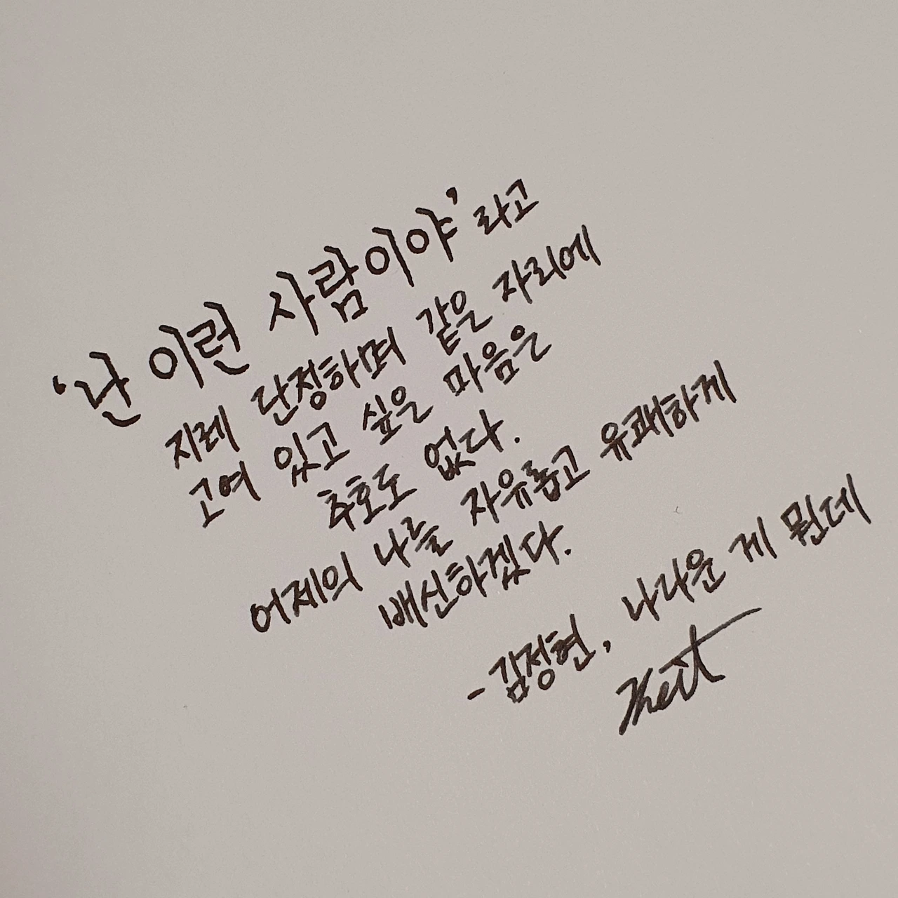 ‘난 이런 사람이야’라고 지레 단정하며 같은 자리에 고여 있고 싶은 마음은 추호도 없다. … 앞으로 금기어는 ‘내가 감히’. 어제의 나를 자유롭고 유쾌하게 배신하겠다.