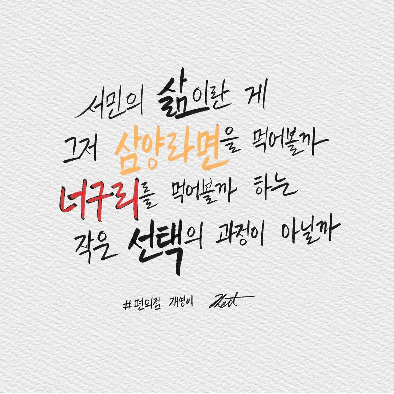서민들의 삶이란 게 그저 삼양라면을 먹어볼까 너구리를 먹어볼까 하는 작은 선택의 과정 그리고 여기서 소확행 할 수 있는 것이 전부라면 전부다.