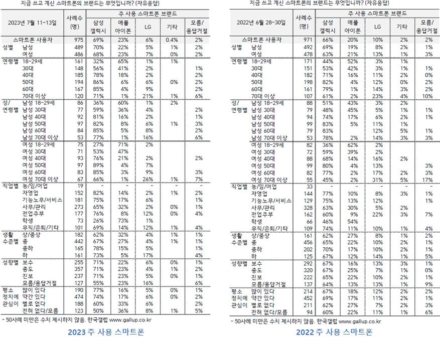 이러한 내용들을 접할 때 가장 마음 아픈 순간은 “갤레기, 아재폰” 등과 같은 단어들을 마주할 때입니다. 아이들이 갤럭시에 대해 안 좋은 인식이 생긴 것은 키즈폰 탓으로 돌릴 수 있겠지만 여전히 압도적인 국내 점유율을 차지하고 있는 갤럭시가 왜 이런 말까지 들어야 할까요?