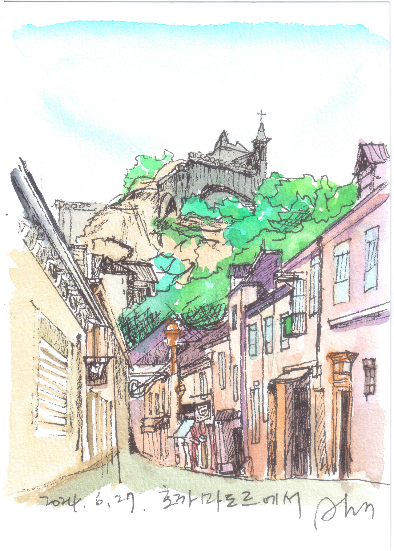 자기 전에 졸면서 그림을 그리고 있는데 언니야가 “공짜로 차를 태워준다니 그림이라도 한 장 주던지..” 한다. 이것이 졸음과의 사투로 그린 건데 바람 빠진 풍선 같은 내 마음은 이미 돌아섰다. “됐어요. 마이 플레져래잖아요.”하며 하품을 해대었다. 순명하겠다 해놓고는 까마귀 고기를 먹은 게야. 아니다. 배부르고 등 따시니 이제 다른 소리가 안 들리는 거다.