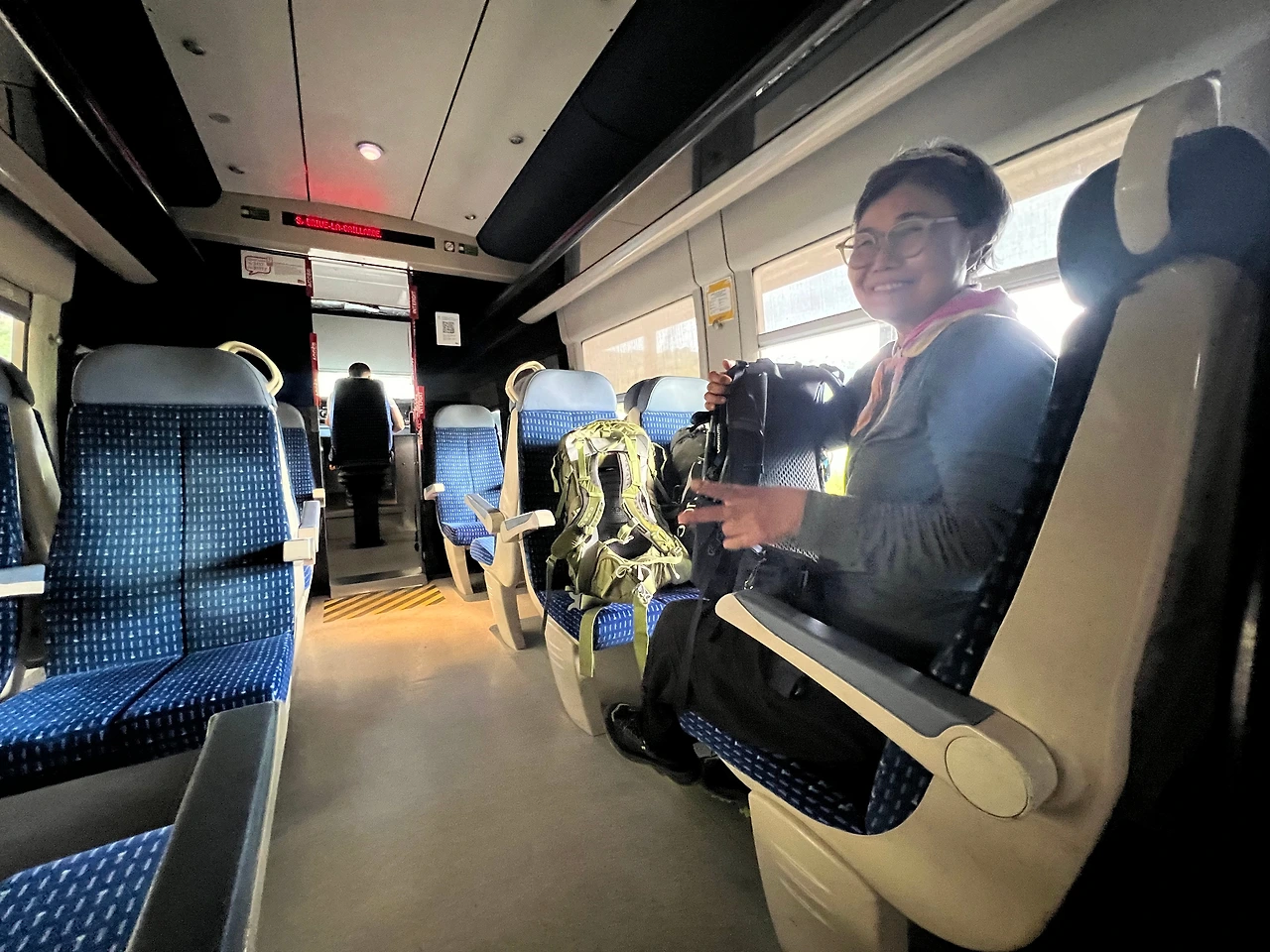 다시 똘루드 마따 비아우로 가는 기차를 1시에 탔다. 안내에 따라 D승강장에서 정시에 오는 기차를 탔고, 승무원이 오길 래 티켓을 보여주며 이게 맞냐고 물어보았다. 왜냐하면 우리 자리에 다른 사람이 버젓이 앉아 자고 있었기 때문이다. 자는 사람을 깨우기도 뭣해서 마침 승무원이 오길래 전자 티켓을 보여주며 물어보았는데, 빨간 유니폼을 입은 어려보이는 승무원은 우리의 전자 티켓을 보더니 맞다며 아무데나 앉으라는 제스쳐를 취했다. ‘이상하다. 일등석인데 왜 아무데나 앉는 거지?’ 이상했지만 프랑스는 그런가? 승무원이 맞다는 데 뭐라 하겠는가? 우린 비어있는 좌석으로 가서 앉았다.