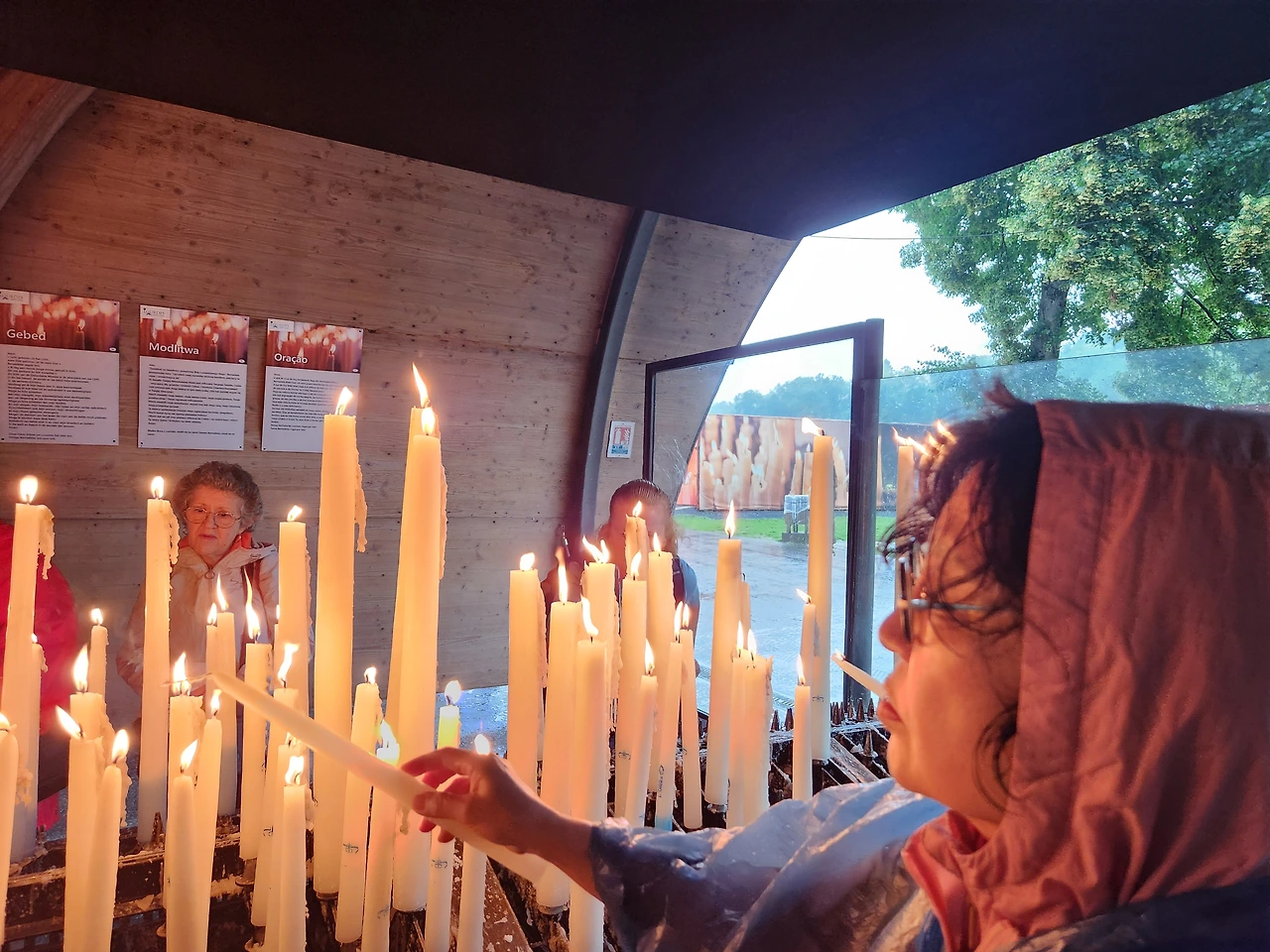 지금까지 걸으며 만나 본 돌로 된 작은 성당에서는 하느님과의 만남을 누렸다면, 루르드에서는 수많은 사람들의 간절한 염원, 군중들의 바램, 소망을 본 것 같다. 둘 이상 모인 곳에 내가 있다고 하신 말씀을 왜 하셨는지 조금 이해가 되었다고나 할까. 저 사람들의 염원은 무엇일까? 더러는 건강이겠고 더러는 치유이겠고, 각자의 소망이 다 다르겠지만 많은 사람이 모여 기도의 힘이 커지는 것은 진실인 것 같다. 대기 전체가 하늘로 향하는 사람들의 염원으로 꽉 차 있는 것 같다. 진정어린 소망자체가 이리 감동을 줄 줄이야.