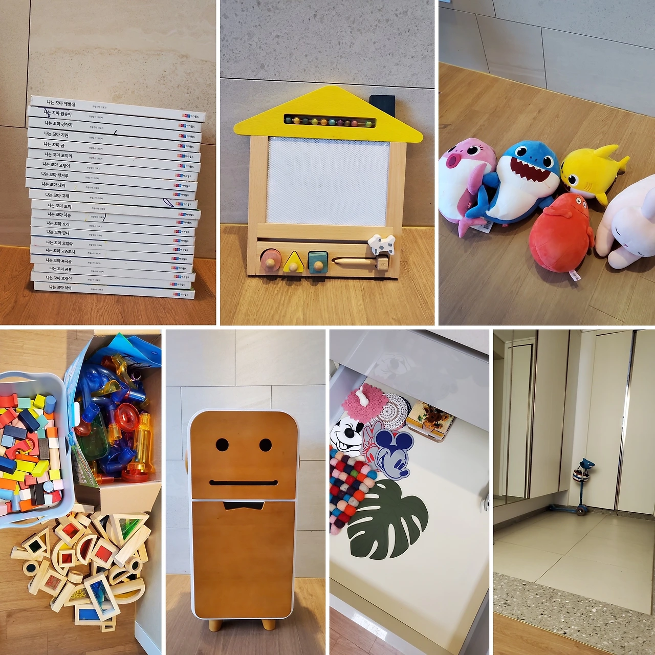 아기 상어 인형들! 어렸을 적 상어를 좋아하는 아이는 여기저기에서 상어 선물을 많이 받았었다. 아기 상어와의 추억에 망설일 줄 알았던 아이가 너무나 흔쾌히 보내주는 모습에 살짝 놀랐다. 왠지 내가 좀 서운해해야 할 것 같아서 추억을 곱씹으며 보내주었다.