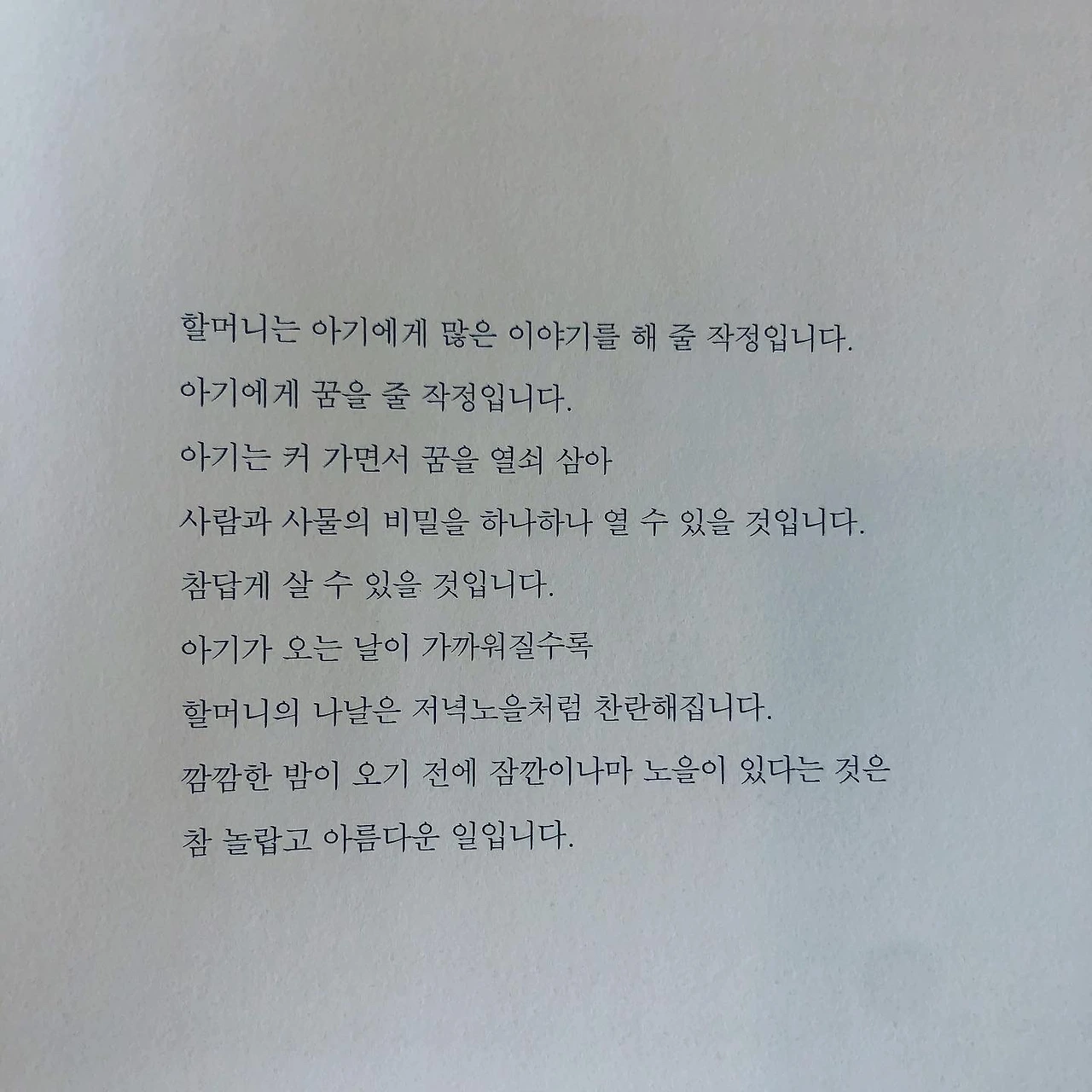 나도 언젠가는 할머니가 되겠지. 그리고 할머니가 된 나는 할머니를 그리워하며 아가를 마중하겠지.