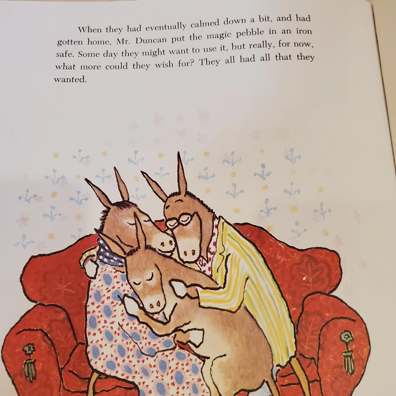 '엄마 이거 magic pebble (마법의 조약돌)이야. 실베스터(Sylvester)가 찾았던 그 조약돌이야! 자 그럼 나도 손에 쥐고 소원을 말할게 I wish the corona virus disappears (코로나바이러스가 사라졌으면 좋겠어) 엄마! 마법이 이루어질까? 확인해봐야지'