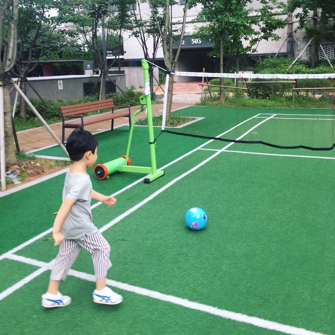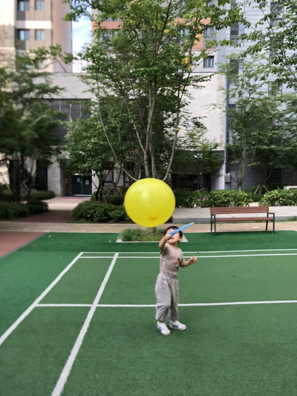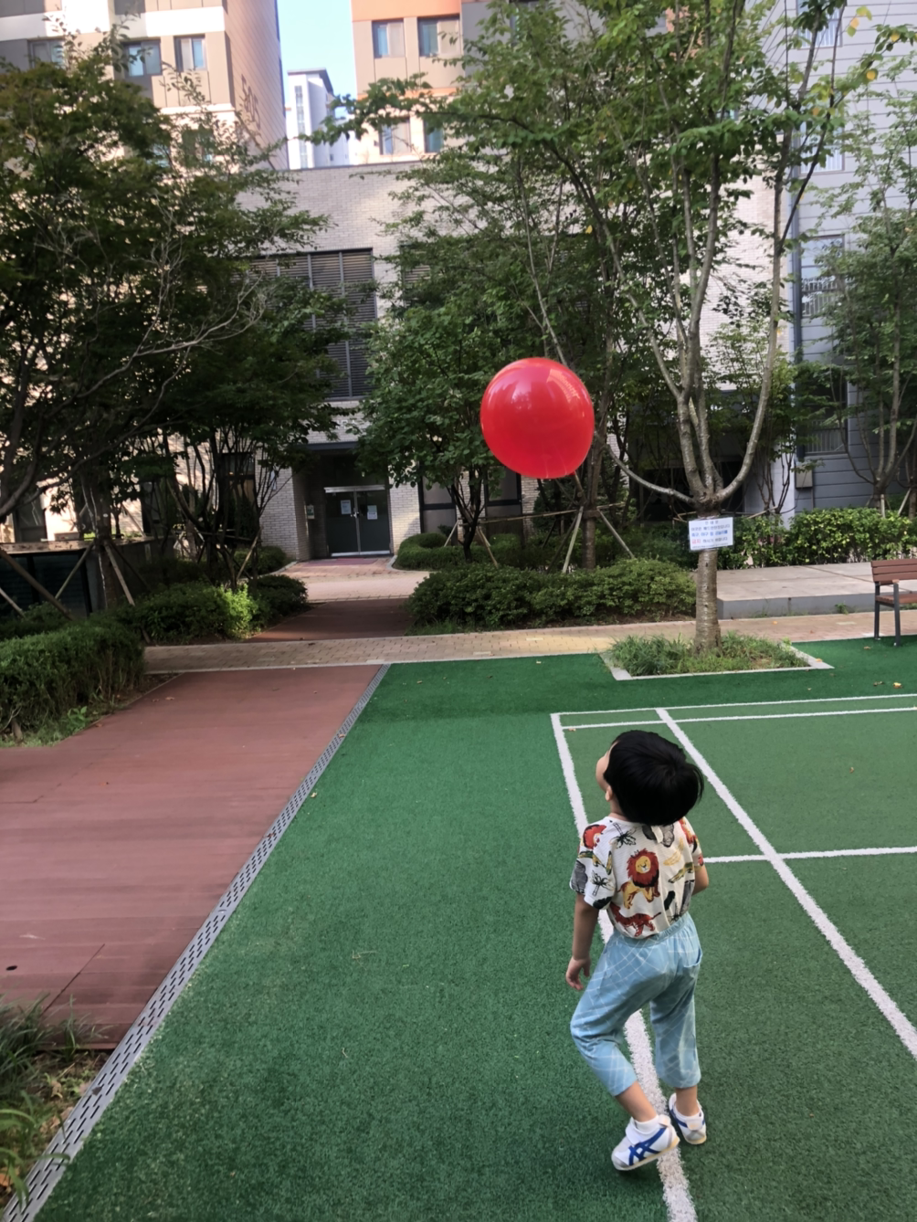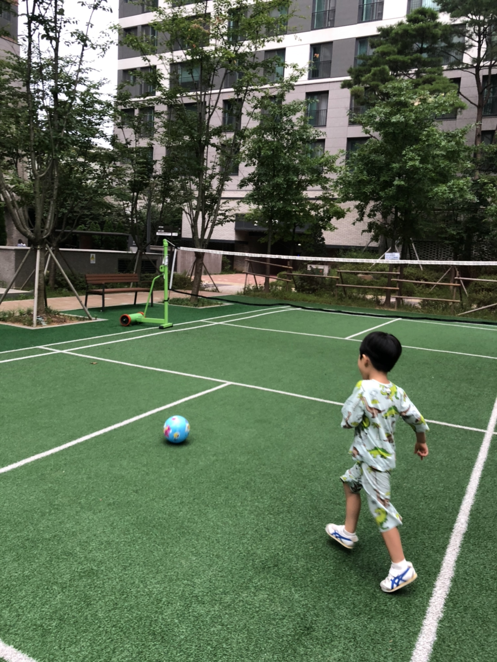 아이와 숲에 다니는 일과는 별개로 아침에 내복을 입은 채로 아파트 놀이터로 나가 달리거나 축구를 한다.