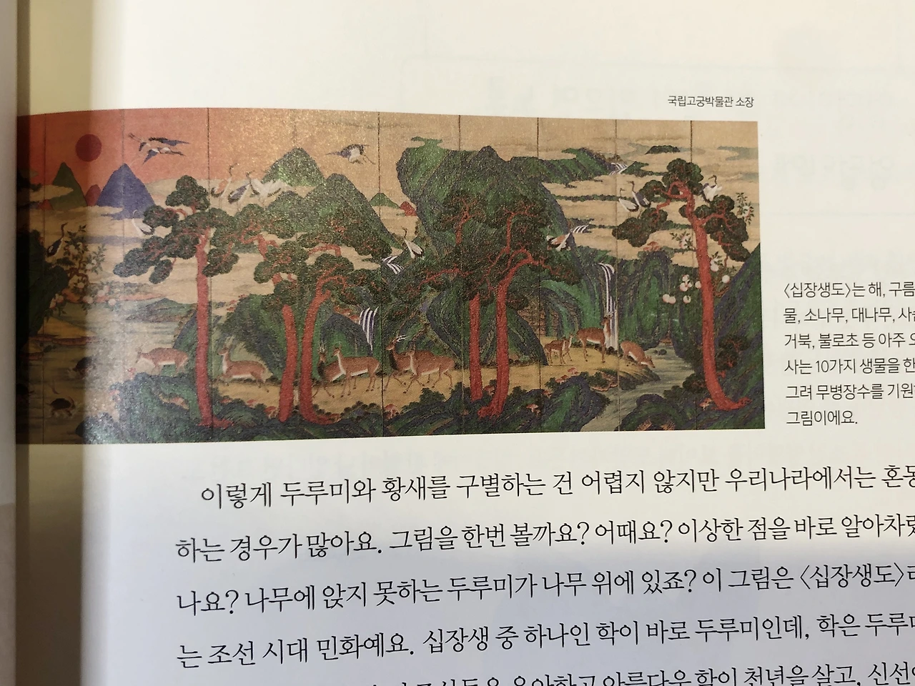 '이거 십장생도 그림! 내가 좋아하는 두루미랑 사슴이 많이 있네'