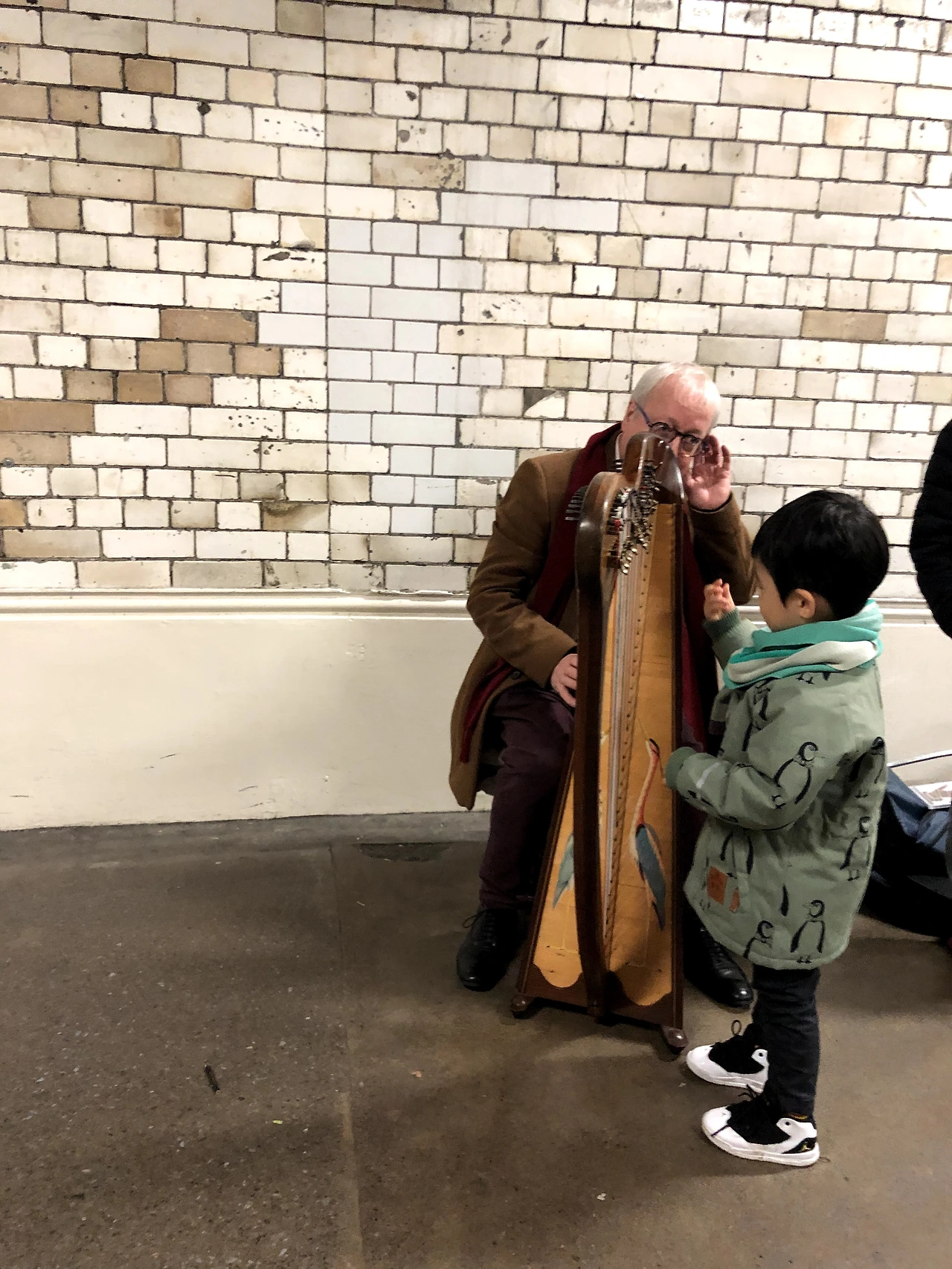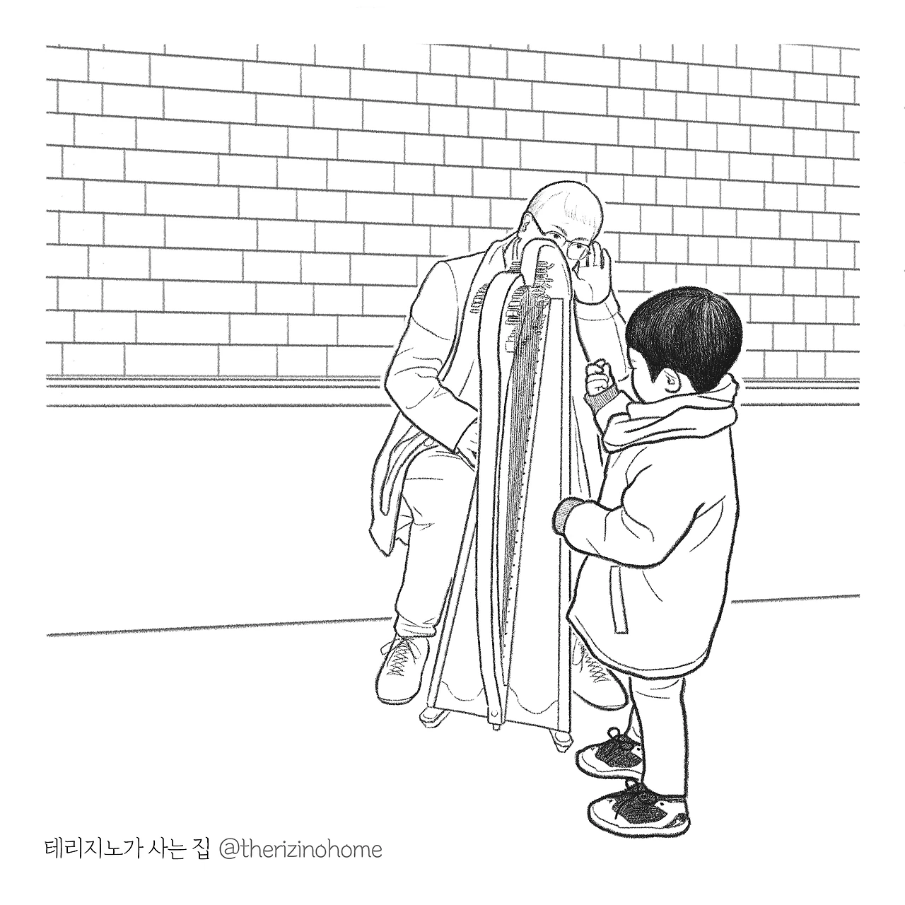 아이는 작년 겨울에 다녀온 영국을 추억할 때마다 하프 할아버지의 안부를 궁금해한다. 내셔널 뮤지엄 앞에서 늦은 시간까지 회전목마를 바라보다가 지하철(언더그라운드)을 타러 가는 길에 하프 할아버지를 만났다. 가던 길을 멈추고 하프 소리를 가만히 듣고 있던 아이를 할아버지는 옆으로 불러 하프를 알려주셨다. 아이는 조심스럽게 하프를 튕겼고 지나가는 사람들의 따뜻한 박수를 받았다(다음 날 우리는 할아버지를 뵈러 또 갔다) 어느새 누군가를 그리워할 줄 알고 그리운 사람들의 안부를 궁금해하는 아이를 보고 있자니 한 뼘 더 자랐구나 싶다. 이런 순간이 올 때면 괜스레 코끝이 시큰해지면서 마음이 뭉클하다. 아마도 다시 돌아오지 못할 아이의 어린 시절이 점점 희미해지면서 아쉬운 기억들이 작동해서 일 것이다. 이런 생각 끝엔 아이와의 순간에 힘껏 최선으로 살아가자 다짐하지만 어디 육아라는 게 다짐한 대로 말처럼 쉽던가-