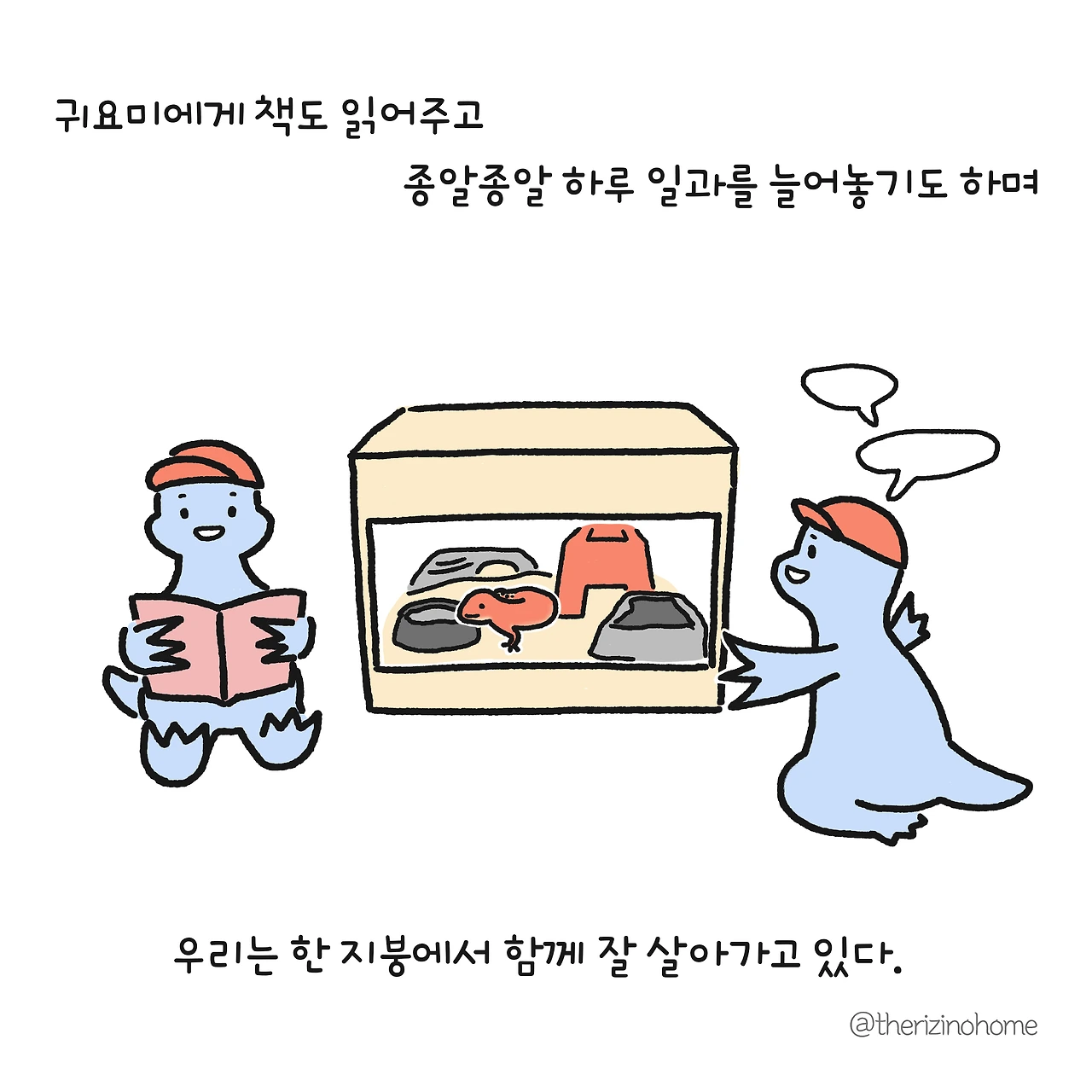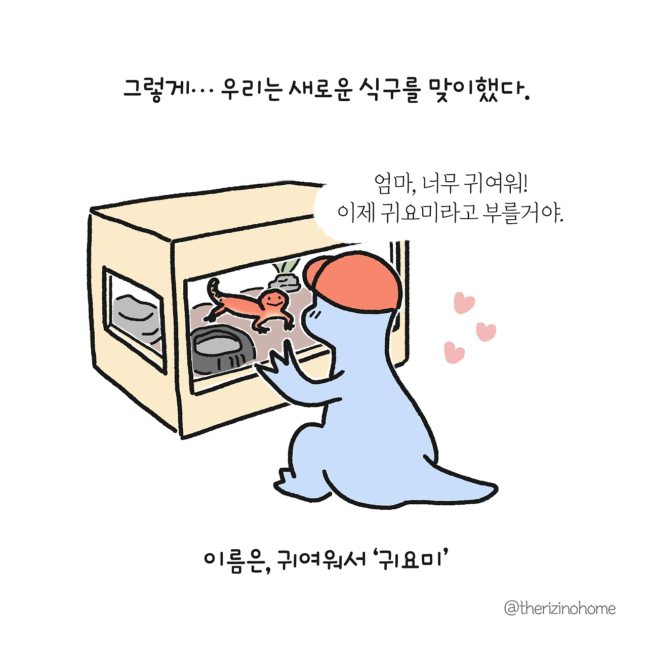 곧 포기할 줄 알았던 아이는 '엄마 내가 먹이를 꼭 줄게. 하루도 빼놓지 않을게 그러면 내가 책임을 지는 거잖아'(아... 나도 책임이라는 단어가 먹이 주는 일이라고 생각되면 좋겠다.)라며 새로운 가족을 맞이하는 일에 열심을 내었다. 내 아이의 열심에 마음을 움직이지 않을 부모가 몇이나 될까?.. 지극히 평범한 우리 부부는 결국 마음을 움직여 쉽지 않은 결정을 내렸다.