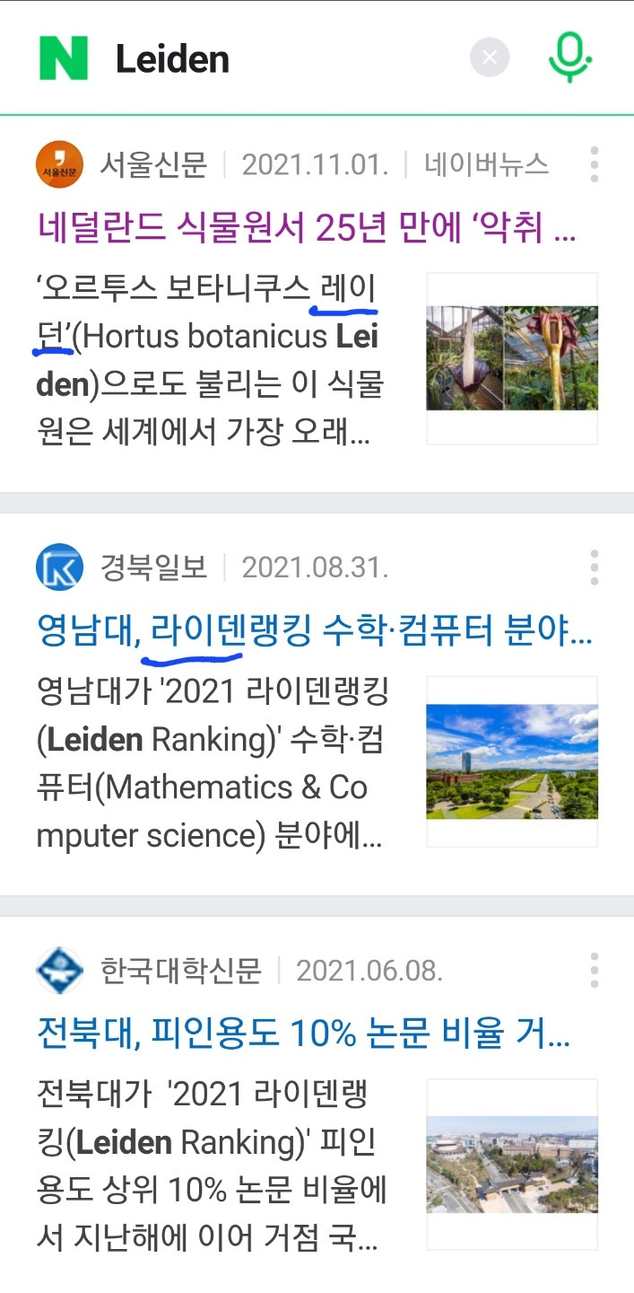 포털사이트 등에 ‘LEIDEN’이라고 입력하면, ‘라이덴’과 ‘레이던’이 많이 눈에 띈다.