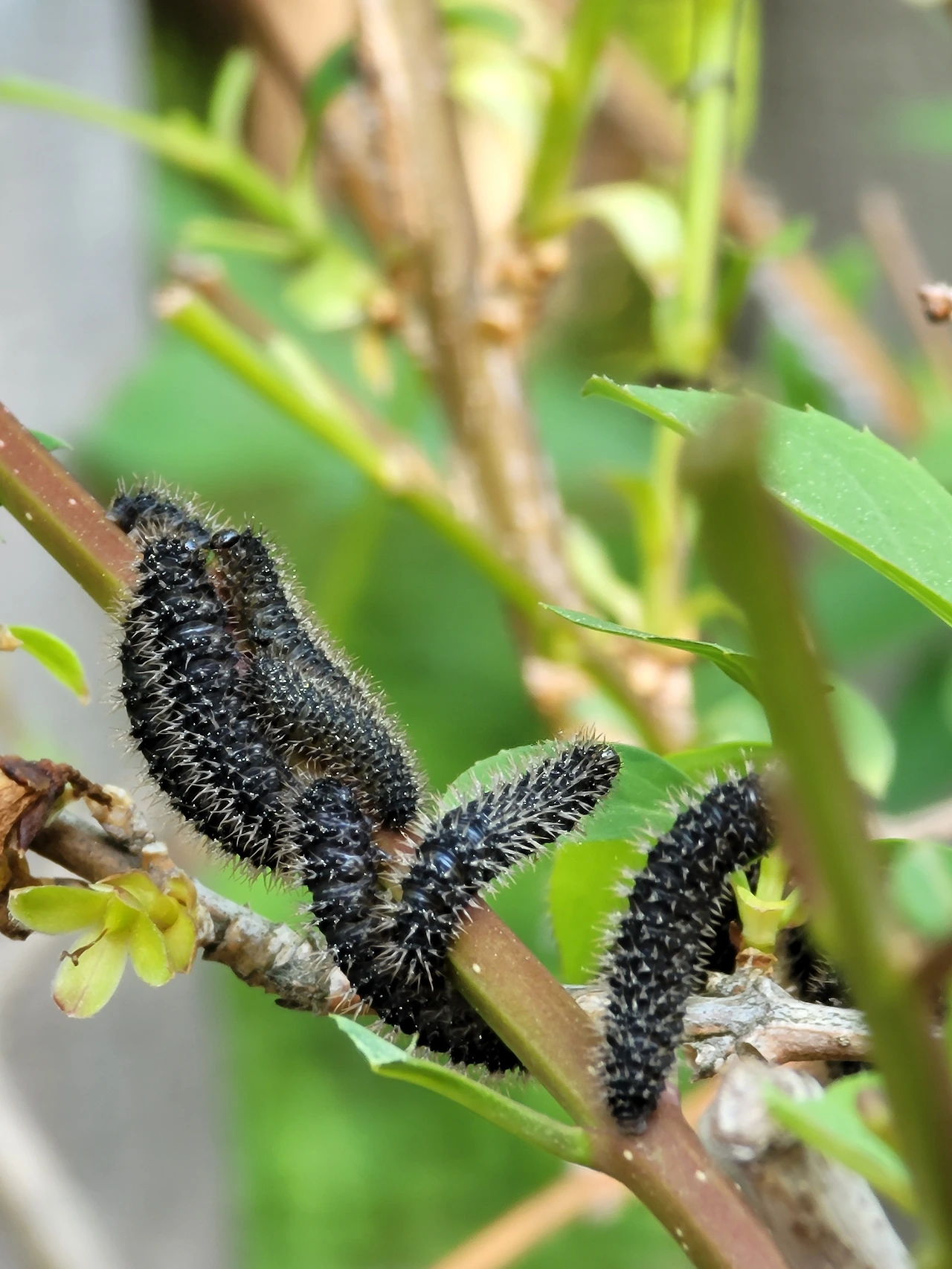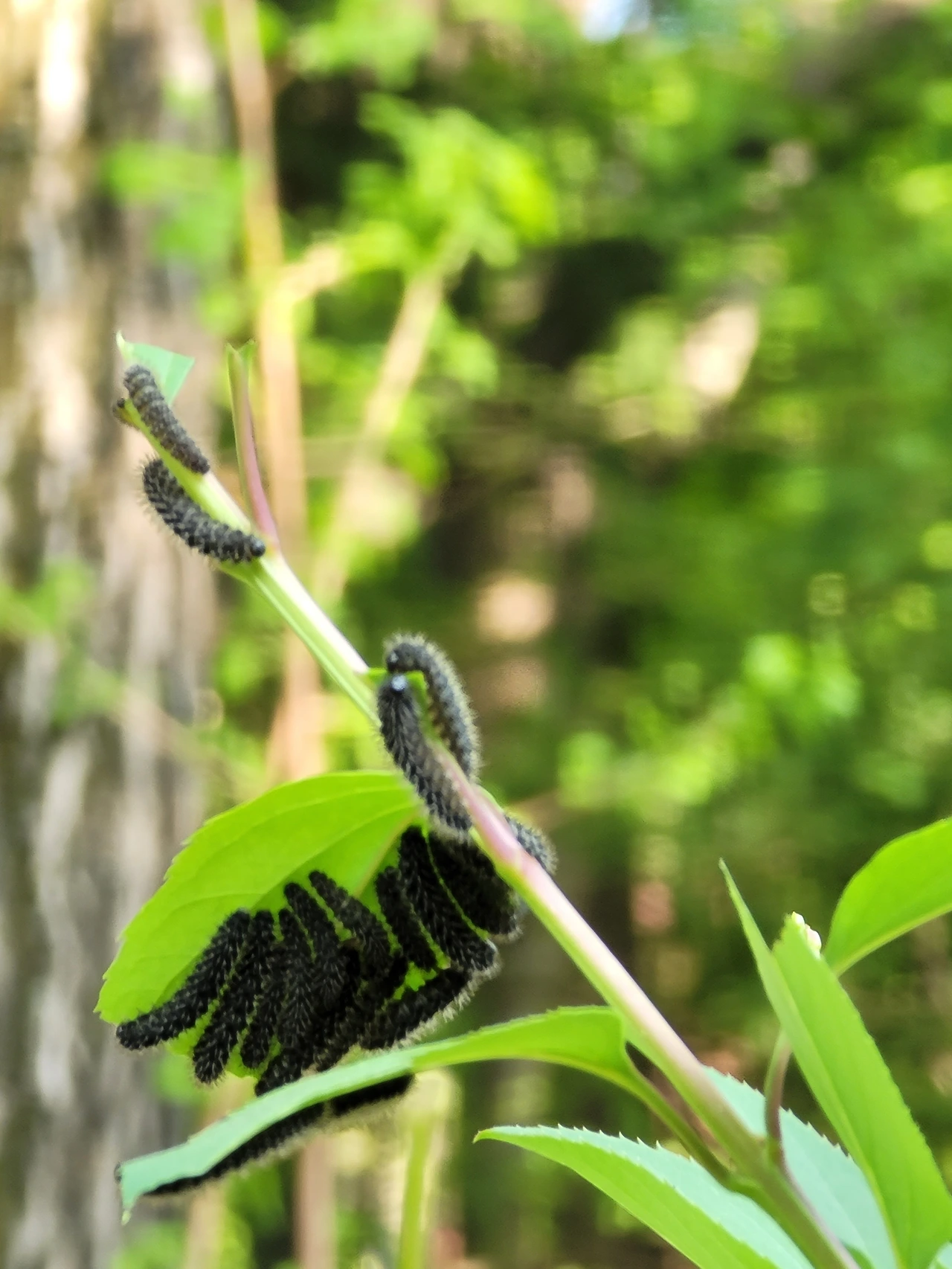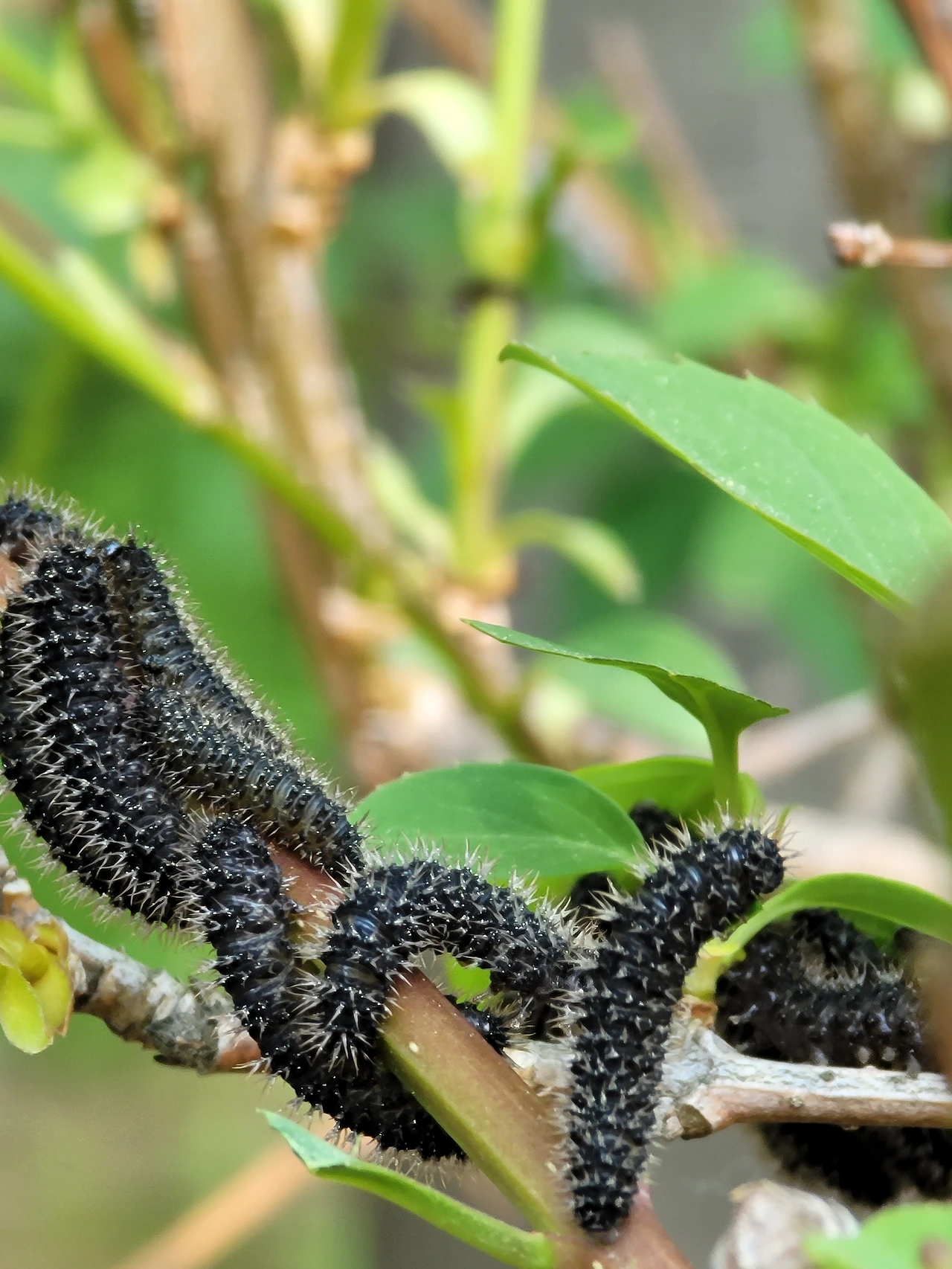초록잎에 엉키고설켜있는 검은 송충이들은 어떤 나비가 되어 날개를 펼 수 있을까요? 나비가 아닌 나방일수도 있겠습니다. 나비든 나방이든 결국 외롭게 홀로 남겨질 것 같습니다.