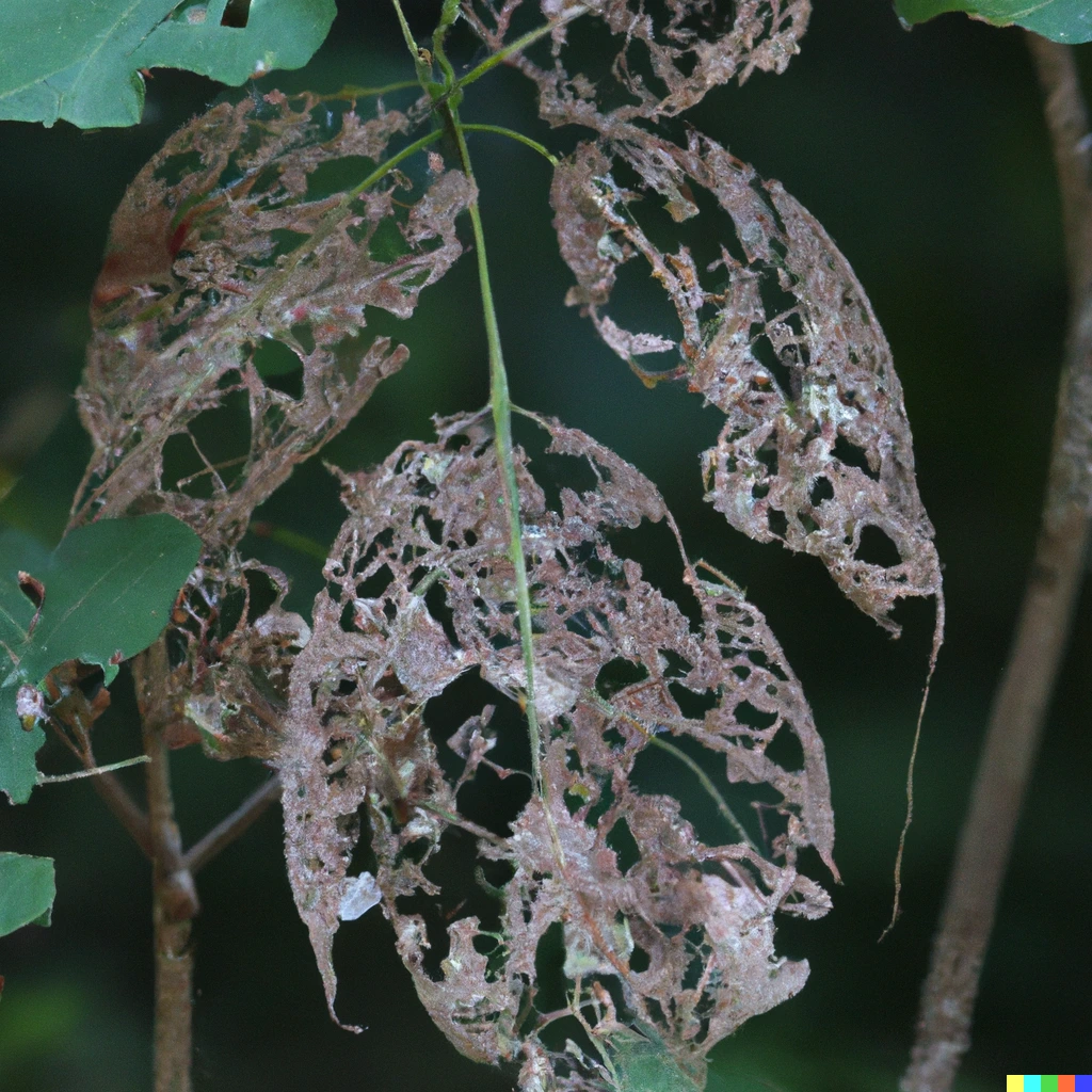벌레 먹은 나뭇잎들을 그려줘