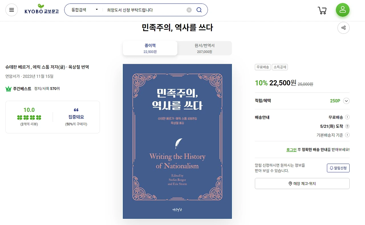 <교보문고> 민족주의 역사를 쓰다 https://product.kyobobook.co.kr/detail/S000210780447