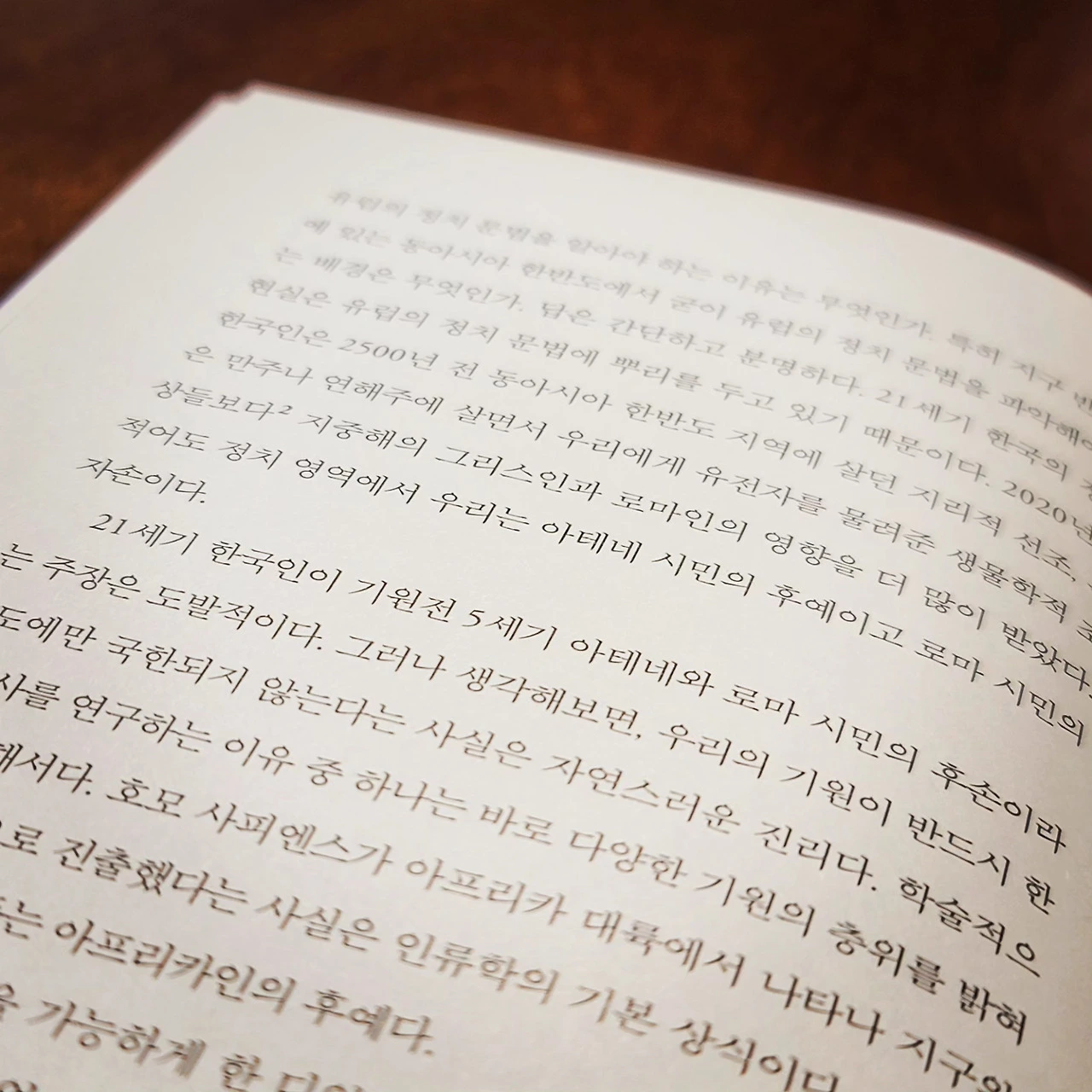 21세기 한국인이 기원전 5세기 아테네와 로마 시민의 후손이라는 주장은 도발적이다.