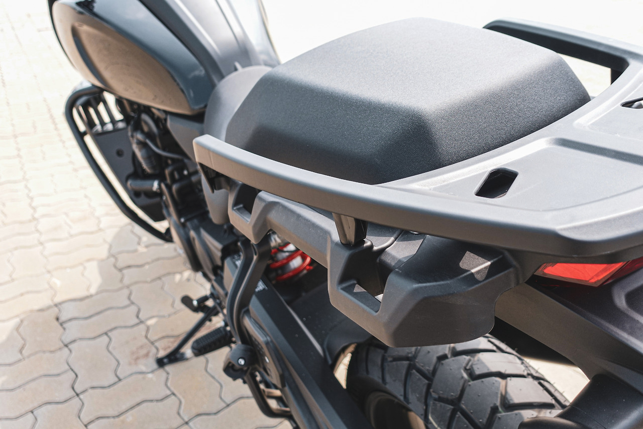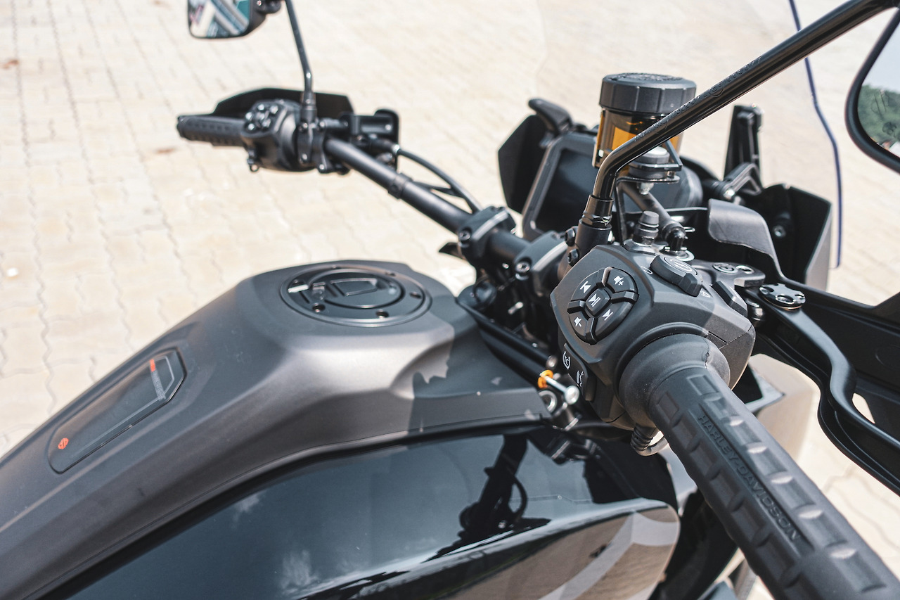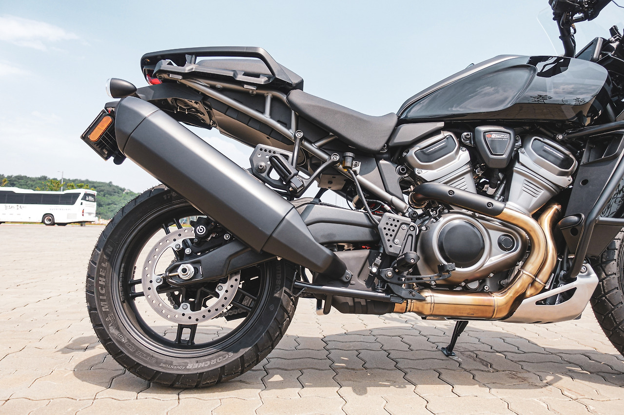 덕분에 디자인 차별점은 확연히 드러나죠. 어드벤처 투어링이란 형태는 낯설어도 할리데이비슨이 만든 모터사이클이란 인장은 제대로 찍었습니다. 할리 특유의 쇳덩어리 질감은 몰라도 쇳덩어리 형태는 잘 살렸어요. 양감이 살아있어 중전차처럼 보입니다.