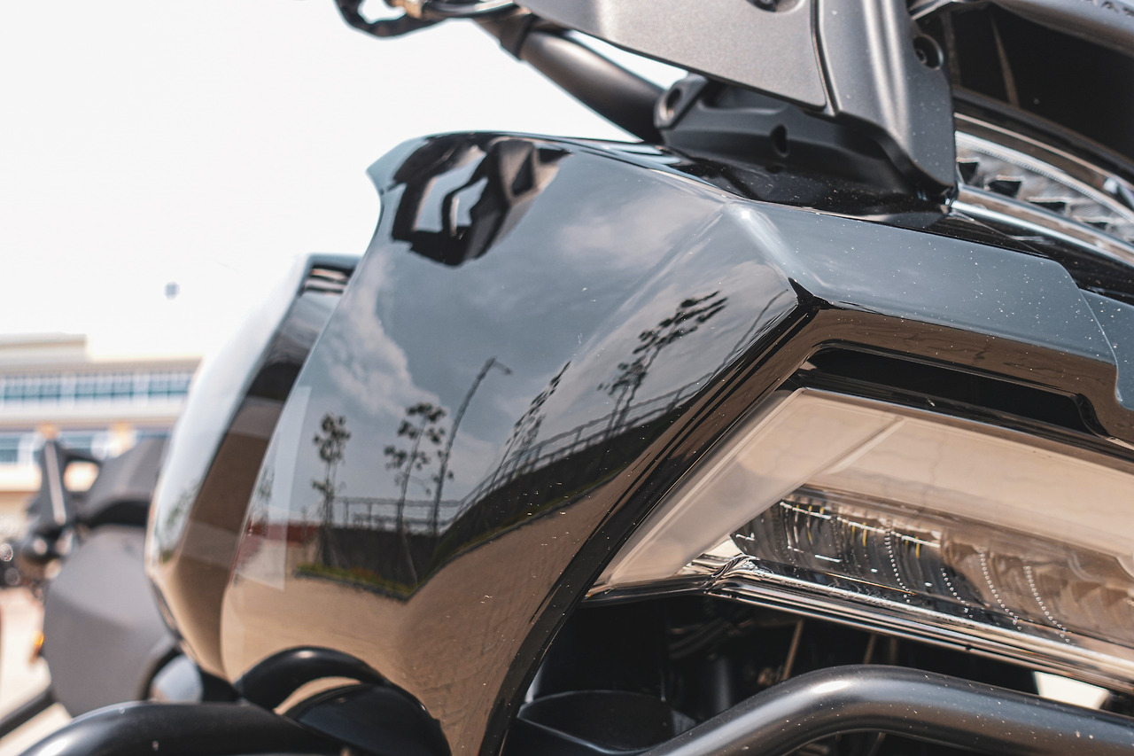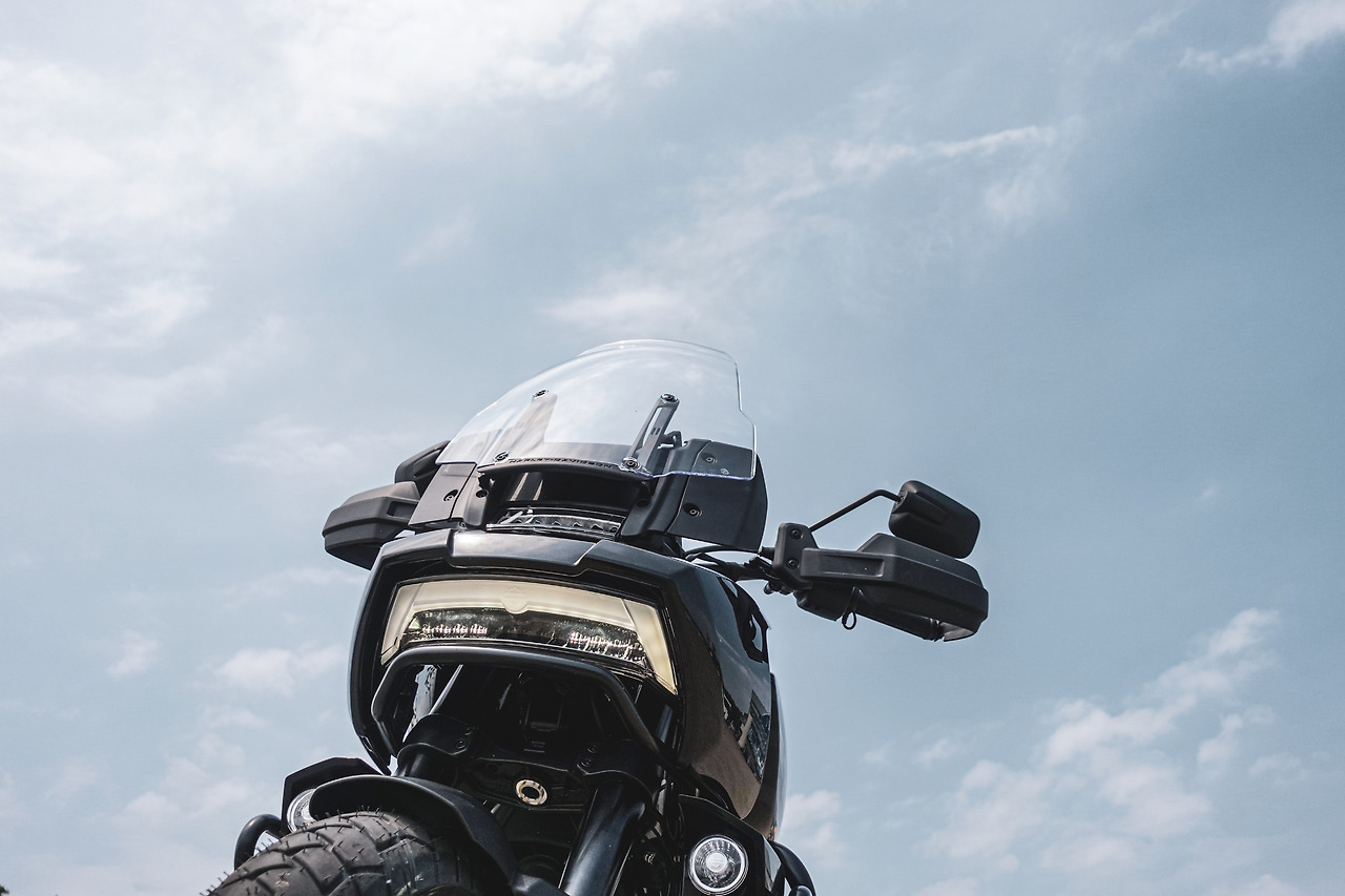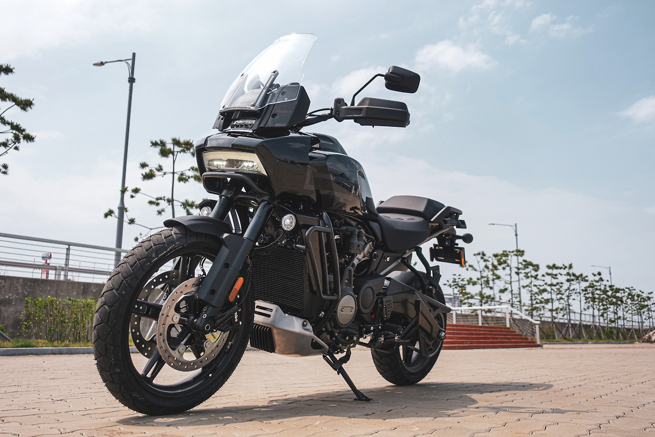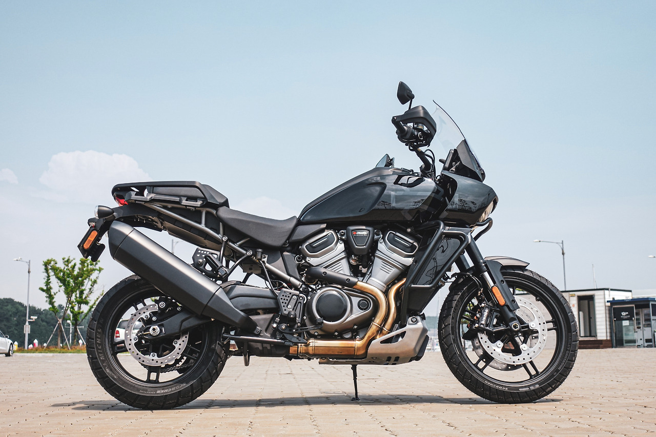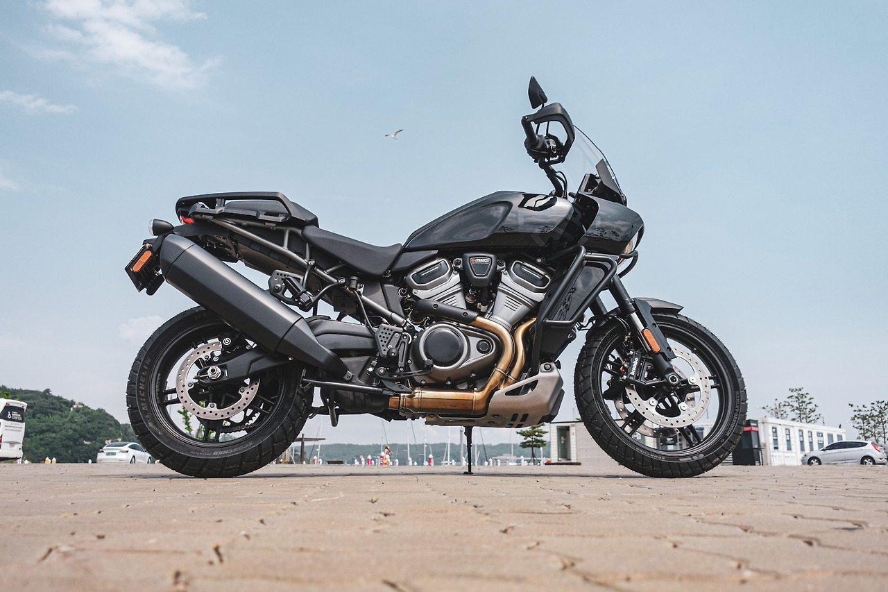팬 아메리카의 외관은 기존 어드벤처 바이크와 다릅니다. 그 점이 큰 차별점이죠. 더불어 할리데이비슨의 정체성이 잘 드러나죠. 기존 할리데이비슨 모델에서 차용한 디자인 요소가 잘 어우러졌어요.