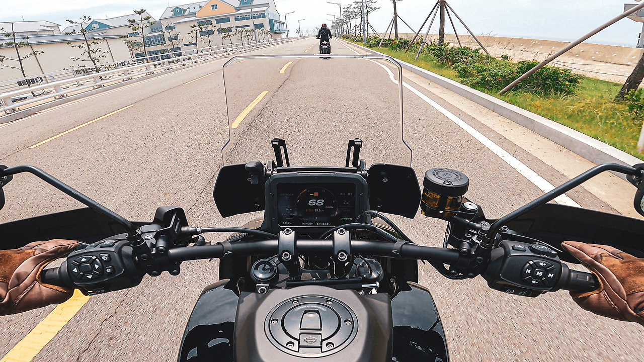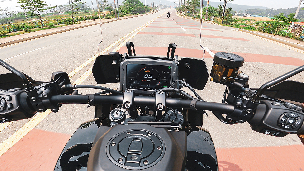 공도 주행에서 느낀 부드러움은 양날의 검입니다. 타기 편하고 부드러운 장점이 있지만, 할리다운 호쾌함은 느끼기 힘드니까요. 할리를 떠나 오버리터급 바이크에 기대하는 박력 면에서도 적어요. 그렇다고 출력이 부족한가 하면 아닙니다. 분명 출력은 잘 나와요. 스로틀을 감다보면 속도계 숫자는 시원하게 올라갑니다. 그 숫자까지 도달하는 감각 차이입니다. 왜 이렇게 세팅했지? 고개를 갸웃거리기도 했습니다.