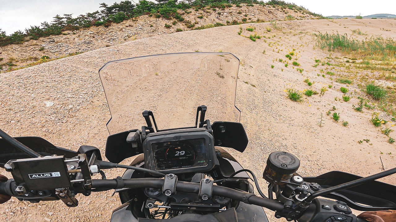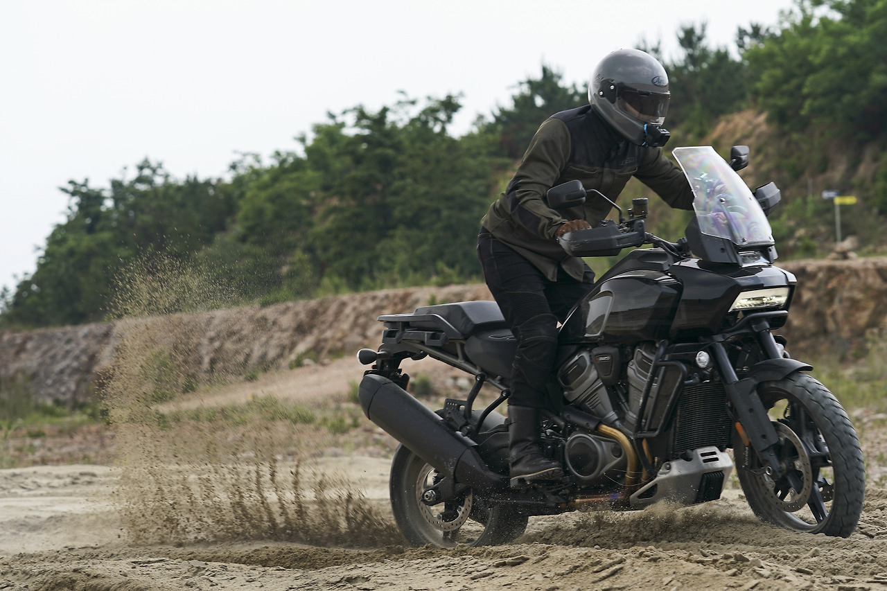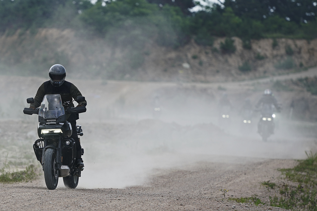 이런 궁금증은 오프로드 시승에서 해소했습니다. 공도에서 타면서 다소 심심하다고 생각한 부분이 오프로드에선 배려심으로 나타났습니다. 누구나 타기 편한 어드벤처 투어링이랄까요. ARH가 적용된 팬 아메리카 스페셜 모델은 시트고부터 주행 감각까지 딱 그 지점을 공략합니다. 아스팔트보다 흙길에서 더 재밌는 할리데이비슨 바이크라니, 세 번째 반전입니다.