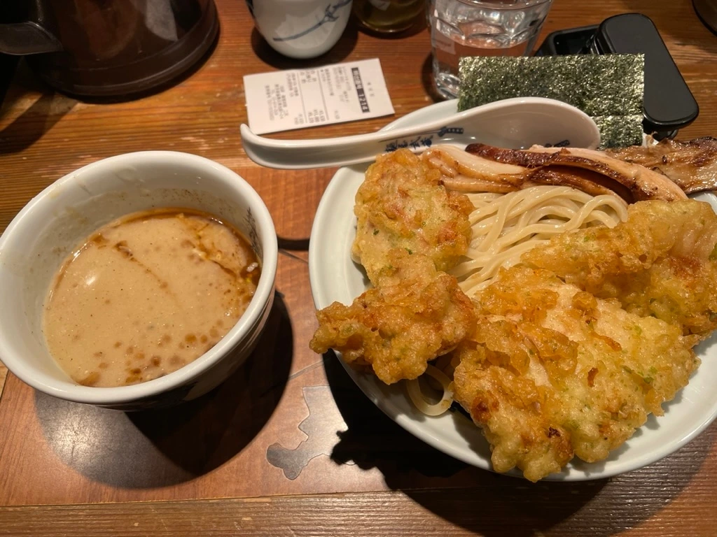 육수에 면뿐만 아니라 튀김을 찍어먹어보기도 하고 면을 찍어먹어보기도 했는데 정말 농후하게 맛있었다.