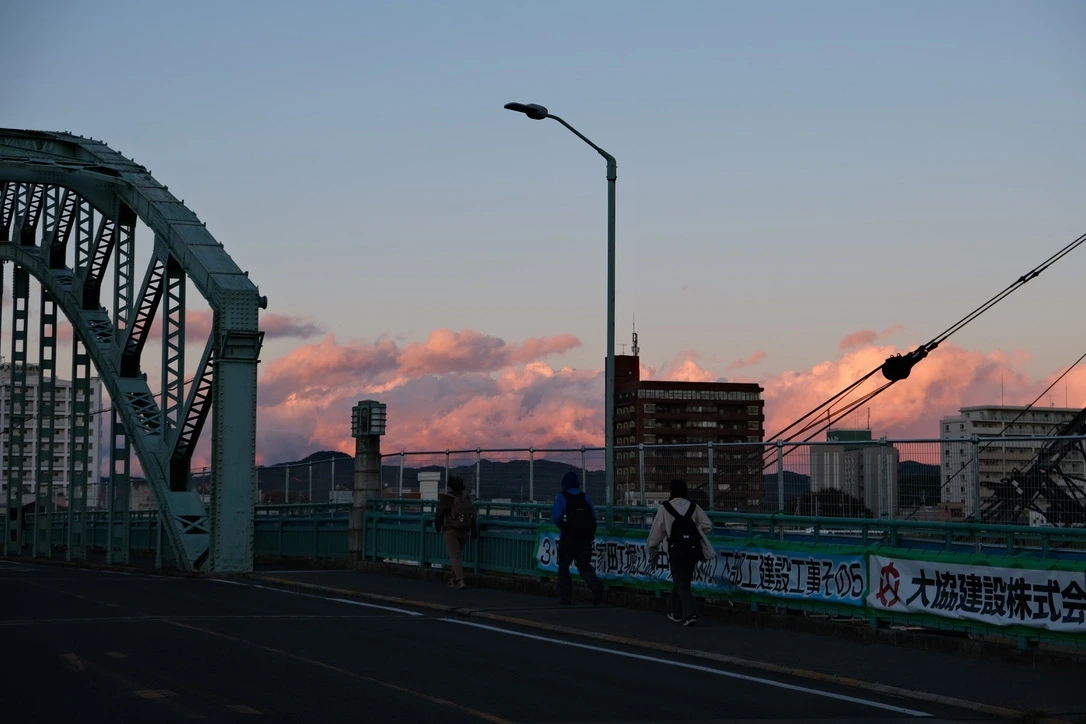 역으로 돌아가기 위해 대교를 건너는데 점점 해가 지더니 하늘이 핑크빛으로 물들었다.