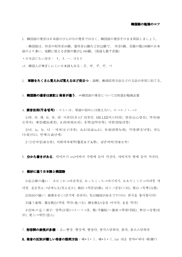 2. 단어를 많이 외워라. 한국어는 일본어와 어순, 동사의 활용방법이 유사해서 단어를 많이 알면 알수록 활용의 폭이 넓어진다. 단어를 외우려고 하지 말고, 예문 문장으로 많이 읽어 입에 붙도록 연습하라.