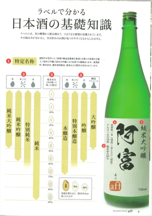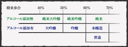일본술, 청주는 인위적으로 양조 알코올을 넣었는지, 어느 정도 깎아 냈는지(도정)에 따라 가치가 달라지는데, 양조 방법에 따라 8가지로 구분된다. ‘알코올을 넣지 않고 쌀과 누룩으로만 빚었으면 준마이(純米)’, ‘일정량의 양조 알코올을 넣어 발효시킨 술은 혼죠-조(本釀造)’라고 한다. 여기에 쌀을 어느 정도 깎아내고 발효를 시켰는지에 따라 종류가 세분된다.