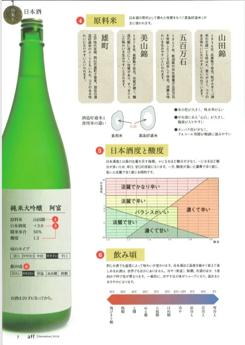 일본에는 1,500여 군데의 양조장에서 4만 여 종류나 되는 일본술, 청주를 만든다. 좋은 청주를 만들기 위해서는 네 가지를 갖추어야 한다고 한다. ‘좋은 쌀, 좋은 물, 좋은 날씨, 그리고 장인’이 그 네 가지다. 이 조건에 가장 적합한 곳이 효고현(兵庫県), 교토(京都), 니이가타(新潟) 등지인데, 이곳들은 역시 좋은 쌀의 생산지 이기도 하다. 최근 10년 동안 일본술의 전체 생산량은 소폭 감소한 반면, 고급 주종의 생산량과 수출량은 계속 증가 추이라고 한다.