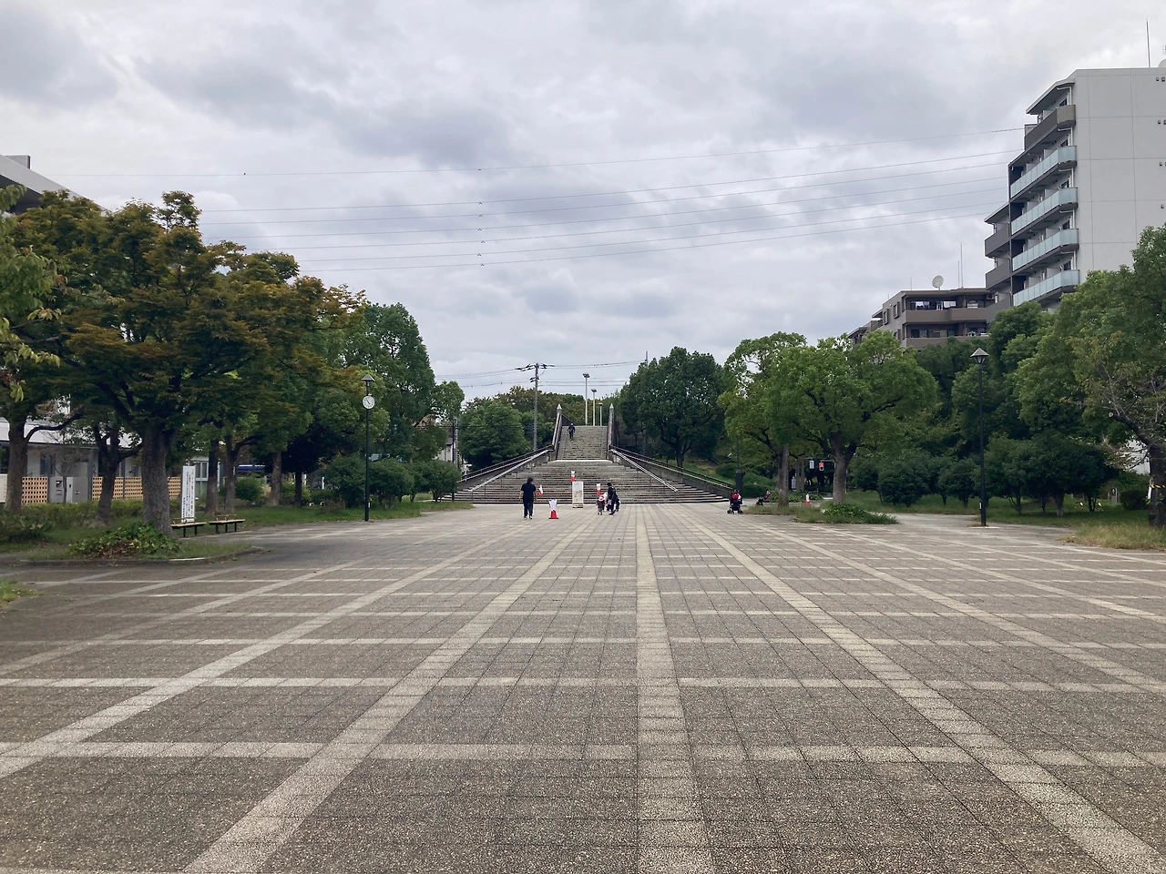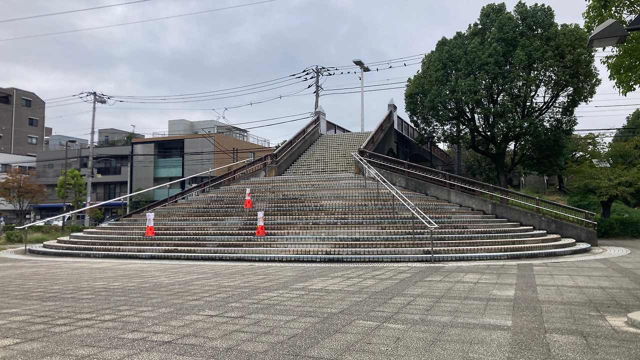 그렇게도 더웠던 여름도 이제는 거의 지나간 모양이다. 지난주에는 22호와 23호 태풍 2개가 연이어 도쿄 앞바다를 지나가며 비가 내려 습도가 높고 추웠다. 그러나 이제 낮기온이 20~25도 정도로 야외에서 운동하기에 더없이 좋은 날이 되었다. 그래서 이번 주부터는 집에서 혈압, 산소포화도 등의 기본 검사가 끝나면 재활치료 선생과 함께 아파트 단지의 다목적 광장으로 나가서 훈련을 한다. 다목적 광장의 바닥에는 길이 30cm의 보도블록이 약 1백 미터 깔려 있어 보도블록을 하나씩 건너뛰며 걸으면서 보폭 늘리기 운동을 할 수 있어서 좋다. 또, 광장에서 공원으로 넘어가는 육교가 있어서 계단 오르기 운동을 하기에도 최적의 장소다.