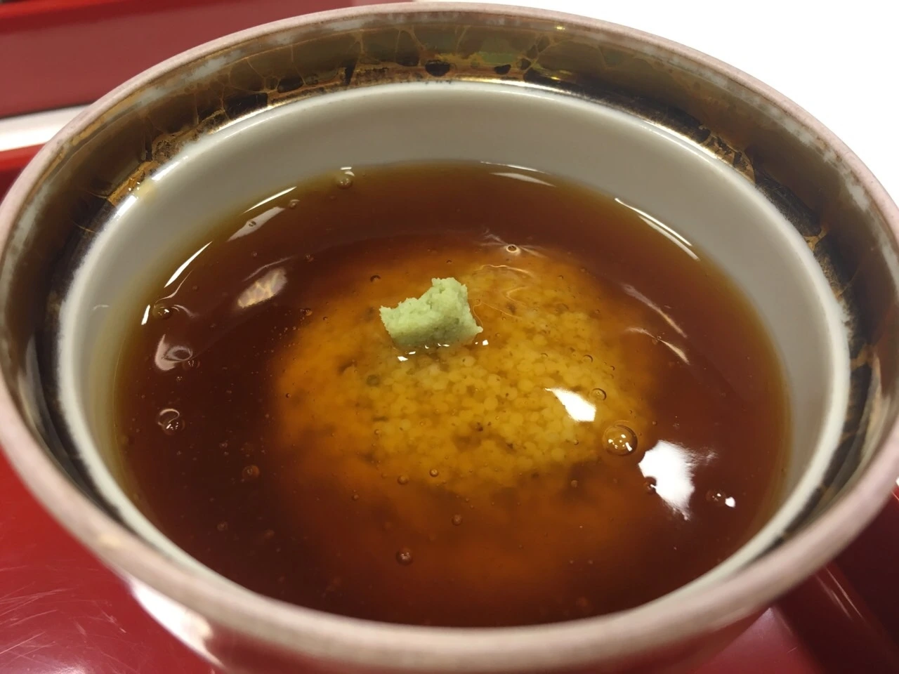 2. 완모노(椀物) : 맑은 장국인 스이모노(吸物) 등 생선회를 먹기 전 속을 데우고 입을 깨끗하게 하기 위해 나오는 요리.
