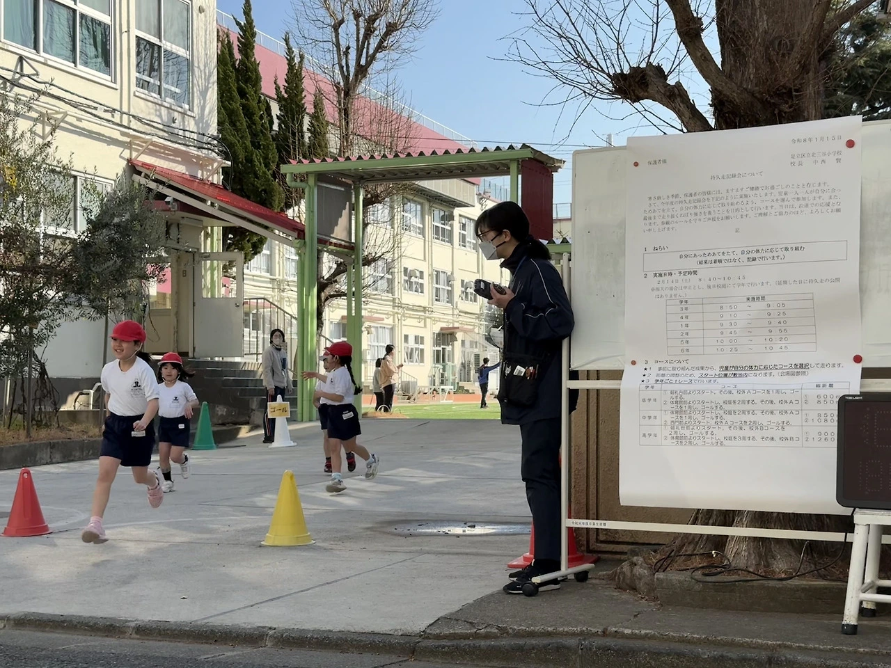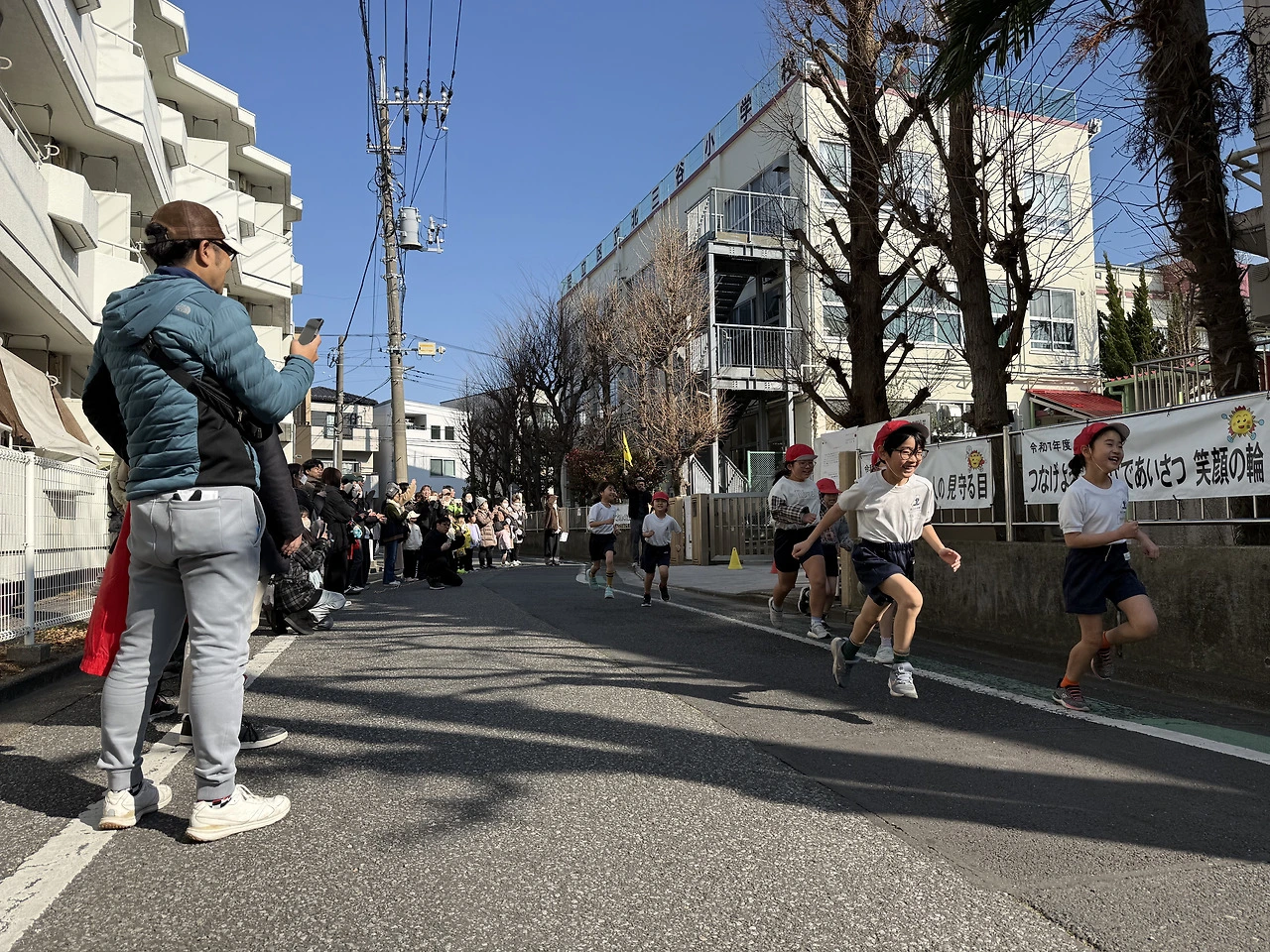 소학교 1학년인 히마리의 ‘오래 달리기 기록회(持久走記録会)’에 다녀왔다. 일본 소학교는 매년 이 계절에 아이들의 오래 달리기 시간을 측정한다. 이 행사는 단순한 체력 측정을 넘어, 학교와 지역 사회가 함께 어우러지는 마을의 작은 잔치 같다.