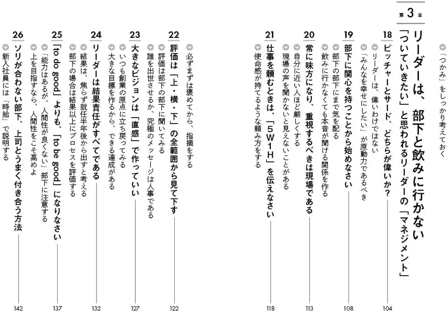 사람들은 리더의 능력에 감탄하지만, 결국 그 사람의 인격을 보고 따르기로 결정한다. 완벽한 척하지 말 것. 약점을 드러내는 용기, 솔직함, 인간미가 신뢰를 만든다. 이와타는 “덕(德)이 재(才)를 앞선다”라고 강조한다. 능력보다 인품이 장기적인 성과를 만든다는 뜻이다.