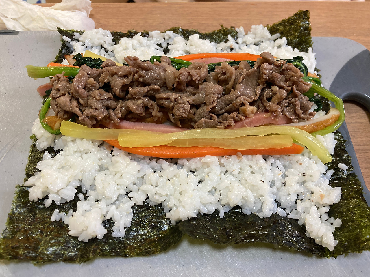 일전에 지인들에게 맛을 보였던 한국식 ‘소고기 김밥’의 호평으로 한국식 ‘해물파전’ 만드는 법도 소개하게 되었다. 간단히 만들 수 있는 벙법, 레시피를 알려 드리면서 부침가루 소개의 의미로 우리 집에서 사용하는 한국산 ‘송가네 부침가루’도 하나씩 선물했다.