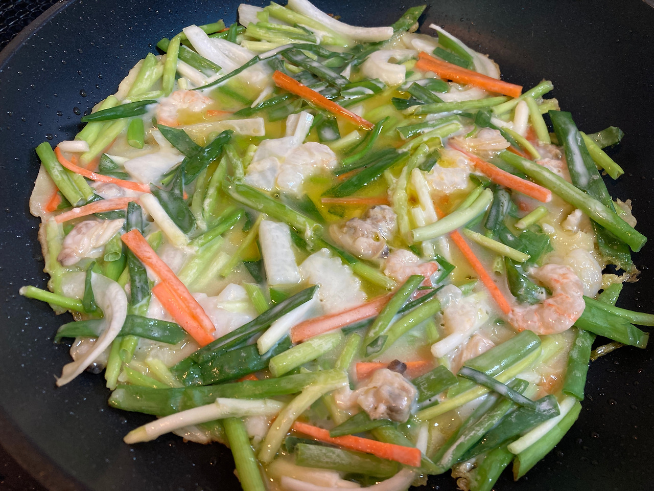 일본 재료로 집에서 한국식 해물파전 만들기
