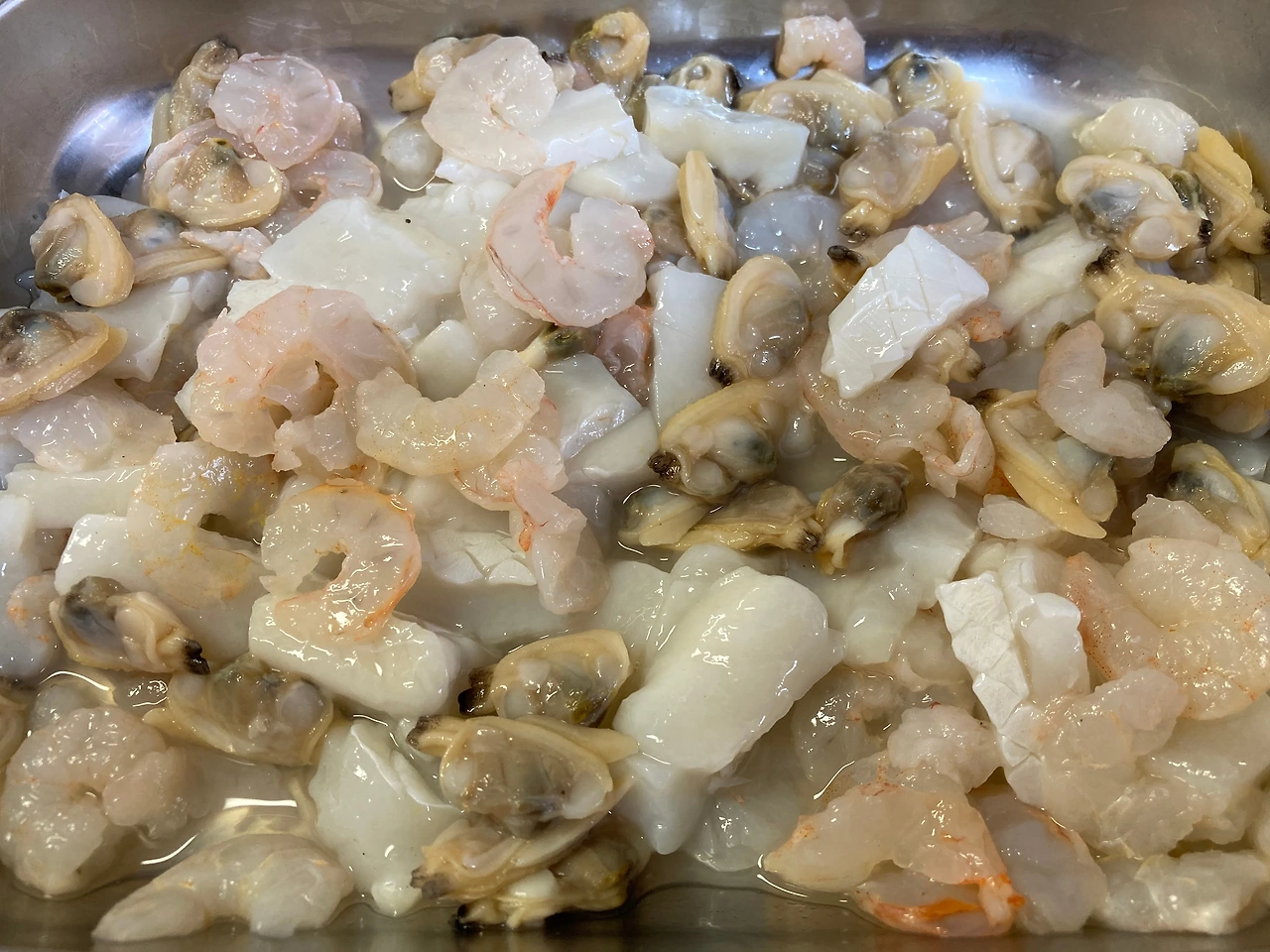 2. 준비한 해산물 재료를 위의 1. 에 넣고 잘 섞습니다.