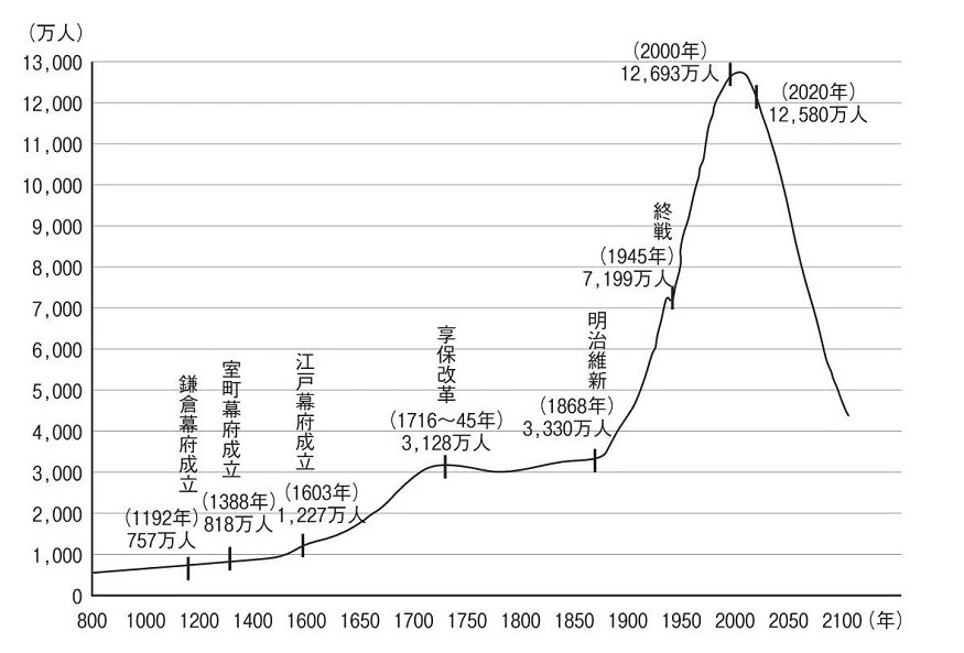 일본은 지방의 쇠퇴, 1차 산업의 위기, 그리고 인구감소 등이 사회 문제로 대두되고 있다. 저자는 특히, 농업, 수산업, 임업 등 1차 산업이 담당자 부족과 산업정책 문제로 향후 20년 내에 소멸될지도 모르는 위기 상황이라고 진단한다. 그러나, 저자는 인구 감소, 저출산 등의 문제로 일본은 쇠퇴 일로를 걷고 있다는 논리에 대해 적정 인구 관점에서 보면 두려울 것이 없다고 잘라 말한다. 1868년 3,300만 명이던 인구가 약 150년 사이에 9천만 명이 늘어났기 때문에 인구의 감소가 경제 축소, 빈곤화로 연결되지는 않을 것이라고 주장한다. 오히려, 문제는 결혼을 하고 싶어도 하지 못하는 상황을 개선하는 것이 시급하다고 지적한다.