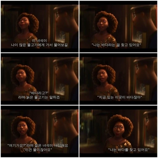 "바다?" 나이든 물고기가 말했어. "여기가 바다야"