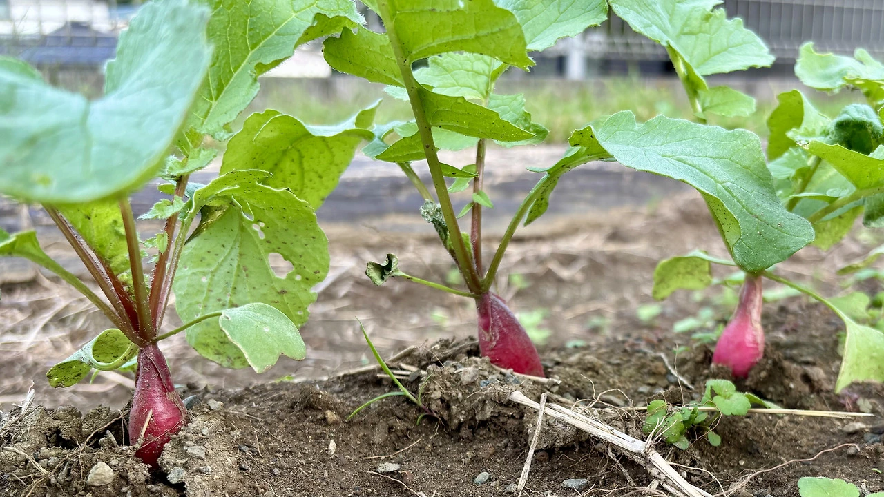 빨간 무는 하루새 부쩍 자란 것 같다. 나는 래디시다, 라는 듯 당당하다. 습관처럼 휴대폰 카메라를 꺼내 최대한 몸을 낮추고 옆으로 길게 찍는다. 잠시 자세를 잡았을 뿐인데 허벅지와 허리가 뻐근하다. 일어서는 순간, 세상이 잠깐 흔들린다.