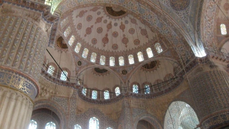 사실 내부 자체가 그렇게 화려하다고 느끼지 못했다. 조금 놀랐던 건, 겉으로는 엄청나게 커 보이는 건물이 내부는 아예 하나의 동공이라는 점이었다. 하지만 그 점이 내게는 오히려 인상적으로 다가왔다. 장식들 역시 수수했기에 내부만 본다면 영락없는 평범한 사원이었다. 화려함에만 신경 쓰는 것보다 이런 수수함이 오히려 더 진실성 있는 모습으로 비쳤다. 물론 기본 구조물들의 질이나 벽화는 문외한인 내가 봐도 고급져 보였다. 나중에 안 사실이지만, 이곳이 블루 모스크라 불리는 이유는 석양이 질 때 사원 내부로 흘러들어오는 빛이 푸르름을 띄어서 그렇다고 한다. 안타깝게도 직접 이를 보지는 못했다.