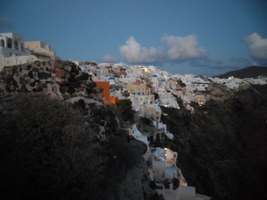 저녁식사를 다 마친 뒤, 소화도 시킬 겸 잠시 계단에 올라가 위아래로 이아마을을 감상했다. 오늘이 산토리니에서 보내는 마지막 밤이기에, 그 외롭고 찬란한 모습을 두 눈에 오랫동안 담고 싶었다.