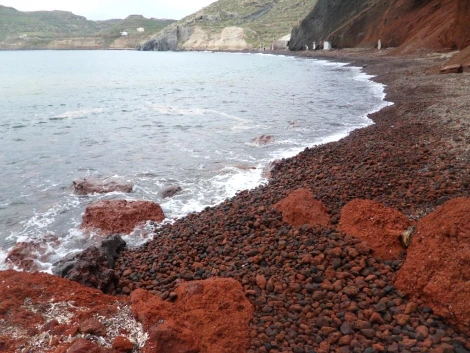 레드비치에 도착한 뒤, 잠시 멍하니 그 자리에 서 있었다. 여전히 푸르른 하늘과 지평선을 보며 '그럼 그렇지'라고 생각함과 동시에, 온통 새빨간 돌로 가득 찬 해변을 보며 경악을 금치 못 했다. 솔직히 그냥 검은 돌들에 빨간 페인트를 들이부었다고 해도 믿을 정도로, 레드비치는 한 치의 틈도 없이 모두 붉은 돌로 되어 있었다.