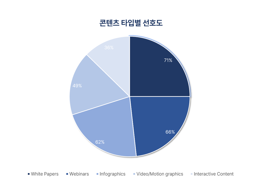 온라인에서 정보 탐색을 활발히하는 B2B 고객들의 49%는 "콘텐츠가 구매 결정에 막대한 영향을 미친다"고 답했습니다(출처: DemandGen). 그럼 넘쳐나는 정보 사회 속에서 B2B 고객들의 눈길을 사로잡을 수 있는 콘텐츠 형식은 무엇일까요?