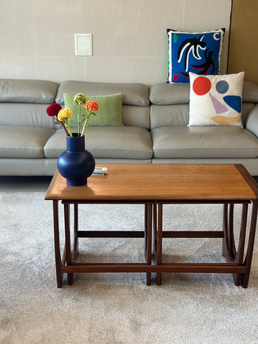 기성 메이커의 소파 앞에 G-PLAN의 빈티지 네스트 오브 테이블이 하나 놓아두었습니다. 우리의 생활공간이란 갑작스럽게 큰 변화를 주기는 어렵습니다. 이렇게 작은 가구 한 개 정도로 시작해 보면 어떨까요?