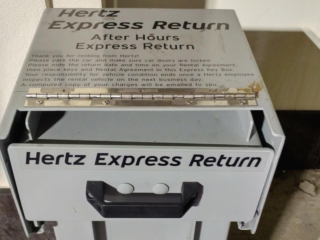 렌터카라면 반드시 반납 절차를 꼼꼼히 알아둡니다. 반납 시간은 예정시간보다 3-4시간쯤 여유 있게. 안 그러면 런닝맨 찍게 됩니다. 저는 Hertz를 통해 샌프란시스코에서 빌려서 라스베이거스 반납이었는데 가는 길에 눈이 심하게 와서 도착했을 땐 이미 사무실 운영시간이 끝나 있었답니다. 코스모폴리탄 호텔에 반납하면 된대서 일단 주차장으로 진입해서 벨보이한테 물어보니 누구는 지하 2층에 누구는 지하 5층에 대라는데 알고 보니 지하 2층이 맞았으며, 그걸 모르고 지하 5층에 일단 반납한 나는 그 차를 다시 찾느라 런닝맨 찍었.... 키는 사무실에서 주차장 쪽으로 바깥으로 나와 저렇게 생긴 데 넣으면 됩니다.