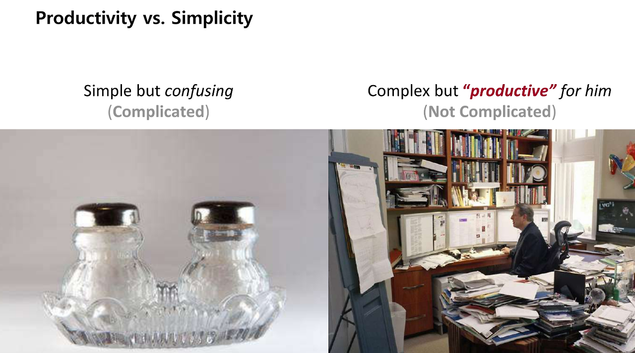 비즈니스, 오퍼레이션, 서비스 세부 정책이 정리되고 나면 UI 디자인을 고민해야 할 때가 온다. 조직마다 다르지만 내 Role에는 Visual Design이 포함되지 않는다. 정리된 문서를 가지고 UI 디자이너가 Sketch로 작업을 다시 한다는 뜻이다. 그렇더라도 서비스 기획자는 와이어프레임을 다룬다. 내 툴은 파워포인트+Power Mockup. (n년 전에 '화면' 전혀 안 다루고 텍스트로만 화면을 정의한다는 조직도 있다고는 들었는데, 그런덴 프로토타이핑 툴을 잘 다루지 않을까) 화면을 그리다 보면 '뭘 그렇게까지'라고 생각될 때가 있는데 바쁘니까, 그리고 워낙 복잡한 걸 설계하느라 생긴 안 좋은 버릇이다. 뭐 꼭 게을러서만은 아니다. complexity가 반드시 complicated를 의미하는 건 아니까. Enterprise Tool의 Priority는 "효율성"이다. 심미성은 물론 중요하지만 flow를 해치지 않는다면 언제든지 우선순위에서 밀릴 수 있다. 왜냐면 시스템 자체가 너무나도 복잡하기 때문이다. 효율적으로 돌아가는 게 먼저다!
