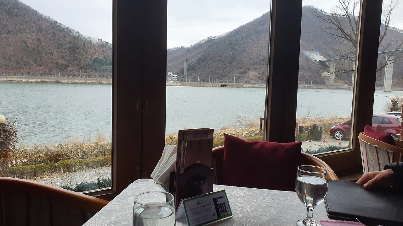 오늘은 애인의 생일이라 교외의 한적한 레스토랑에 다녀왔다. 삐걱이는 나무마루와 클래식 음악. 분위기에 맞추어 빈티지 치마랑 스웨터를 입었다.경양식, 딱 그런 스타일. 예약을 한 덕에 강이시원하게 보이는 자리에 안내받아 여유롭게 풍경을 즐기며 코스를 먹었다.<펜트하우스>를 안 보는데 왠지 배경으로 나올 것만 같은 기분이 들었다. 해가 났더라면 더 좋았을 텐데 아쉬웠다.