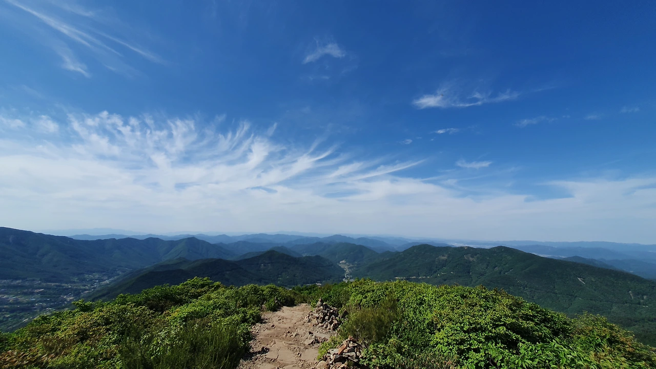 꿀잠을 자고 아침에 숙소에서 일어나 내려온 길을 다시 올려다보니 마지막에 저걸 내려왔다는 거지 싶더라. 사방이 깜깜한데 개소리와 차 소리만 아득히 들려오던 한 시간 반의 사투를 나는 못 잊어. 혹시 종주를 또 계획하게 된다면 하산 계획은 무조건 크고 정비된 길로. 그리고 러닝 양말 말고 등산양말 신는 걸로. 그러지 않으면 두 엄지에 멍이 들 테니.